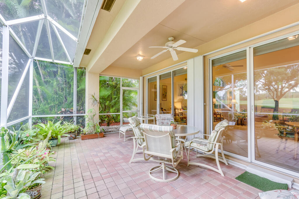 Rarely available annual rental with Gold Membership available to transfer! Property is offered Fully furnished and turnkey. Wake up to beautiful sunrises and peaceful golf course views in this spacious 3-bedroom residencel. The Bentley floor plan offers a bright, open layout with six sliding glass doors leading to a covered, screened patio--perfect for relaxing with your morning coffee or evening wine. The kitchen opens to the family room and breakfast area, all overlooking the fairway. The primary suite features a wall of windows, a luxurious Roman tub, and skylights for natural light in both bathrooms. The third bedroom is currently set up as an office/den. Enjoy light-filled living and serene scenery every day. Telephine, Internet, Cable TV and Security are included.