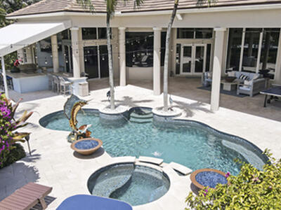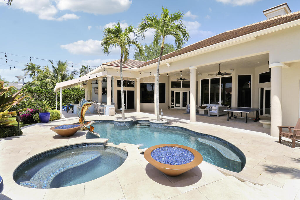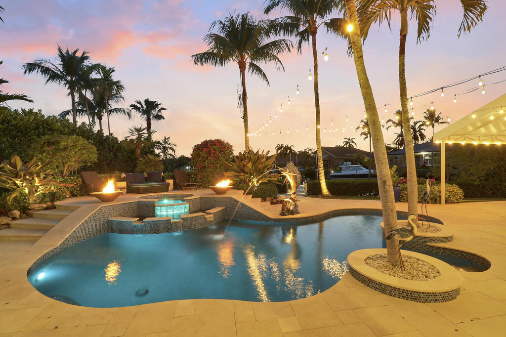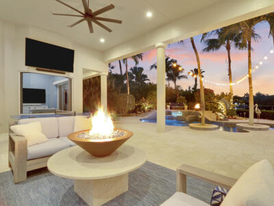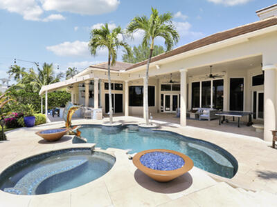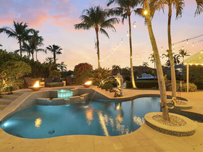 AVAILABLE for Remainder of 2025! Embrace the ultimate waterfront lifestyle in this exquisite 4,336 sq. ft. home, offering over 100 feet of prime Loxahatchee River frontage & direct access to the Atlantic Ocean within just 15 minutes. This stunning property, set on 2/3 of an acre, features 4 bedrooms, 5 bathrooms, and an array of luxurious amenities designed for both comfort and elegance. Step outside and discover unmatched outdoor living with gorgeous gas fire features in the backyard, creating the perfect ambiance for evening gatherings. The property boasts a recently built dock with a 40,000-pound boat lift, a heated spa and pool, and an expansive outdoor kitchen--ideal for hosting. Immaculate landscaping includes a turf yard, a four-hole putting green, & plenty of space for entertaining