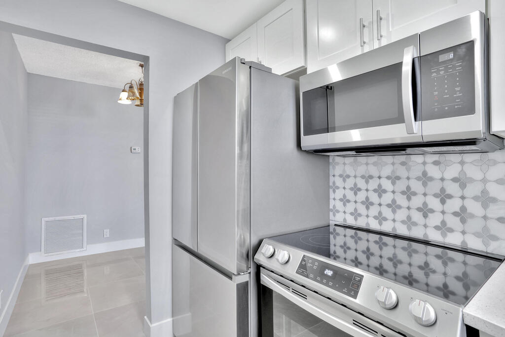 This stunning one-bedroom, one-bath condo in East Pompano is a true gem, located on the fifth floor, offering breathtaking views and abundant natural light. Recently fully remodeled, the interior boasts contemporary finishes and modern amenities. The spacious living area features an open concept design, seamlessly connecting the living room and a stylish kitchen equipped with stainless steel appliances, sleek countertops, and ample cabinetry. The bedroom offers a serene retreat with generous closet space and large windows that enhance the airy feel. The bathroom is beautifully updated with a luxurious shower, elegant fixtures, and chic tile work. Residents can enjoy access to building amenities, including a pool, and convenient laundry facilities. Located just minutes from the beach.