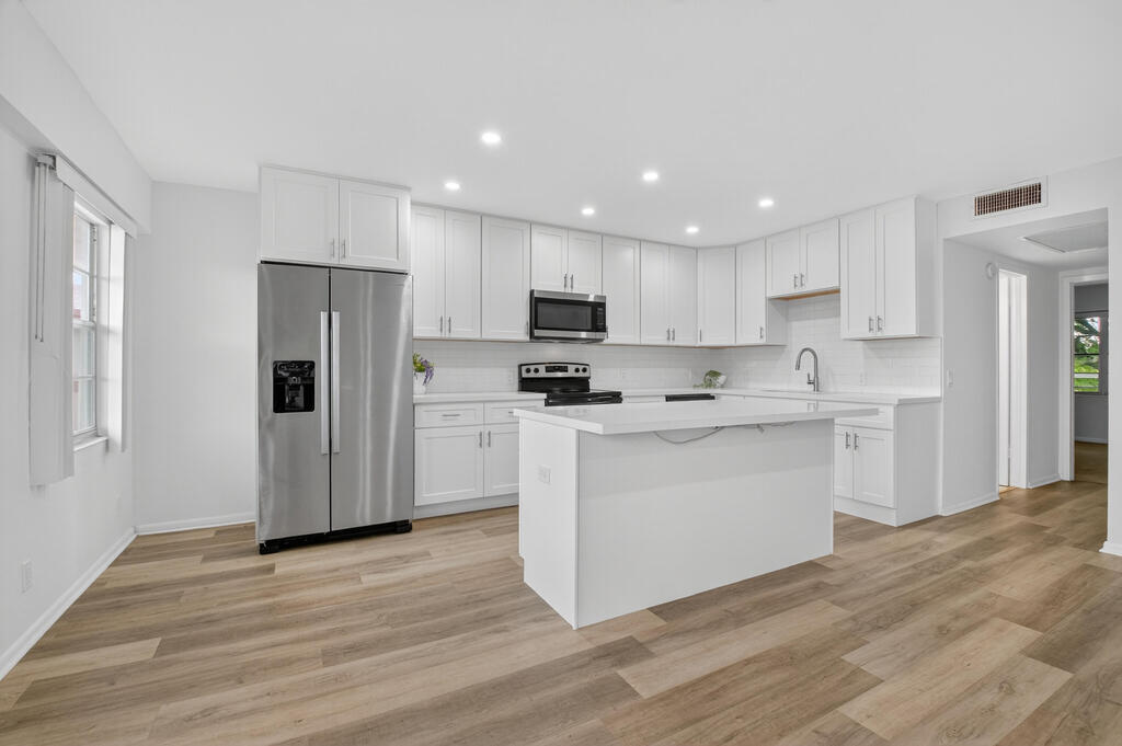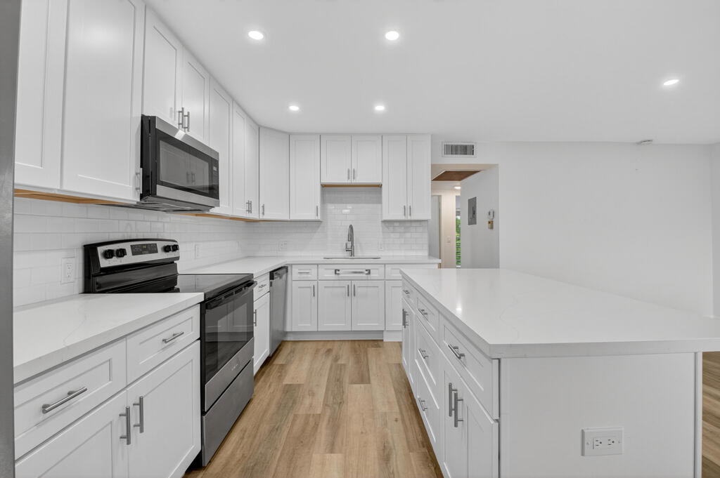 55+ Community...Boca Century Village is a meticulously maintained community and ideally located!Welcome Home to your beautifully renovated 2 bedroom, 1 & 1/2 bath unit on the 3rd floor in elevator bldg. No one above you!Beautiful quartz countertops, kitchen Island offers storage and extra prep space as well as an entertaining space for family and friends. Light & bright with white shaker style cabinets, stainless steel appliances...a great open floor plan. Century Village offers multiple amenities...clubhouse that feels like a hotel lobby, indoor and outdoor pools, tennis, pickle ball, state of the art fitness center, theater, clubs and so much more. Always something to do!Water, basic cable and internet included with 24 hour Manned Gate. Make an appointment today!