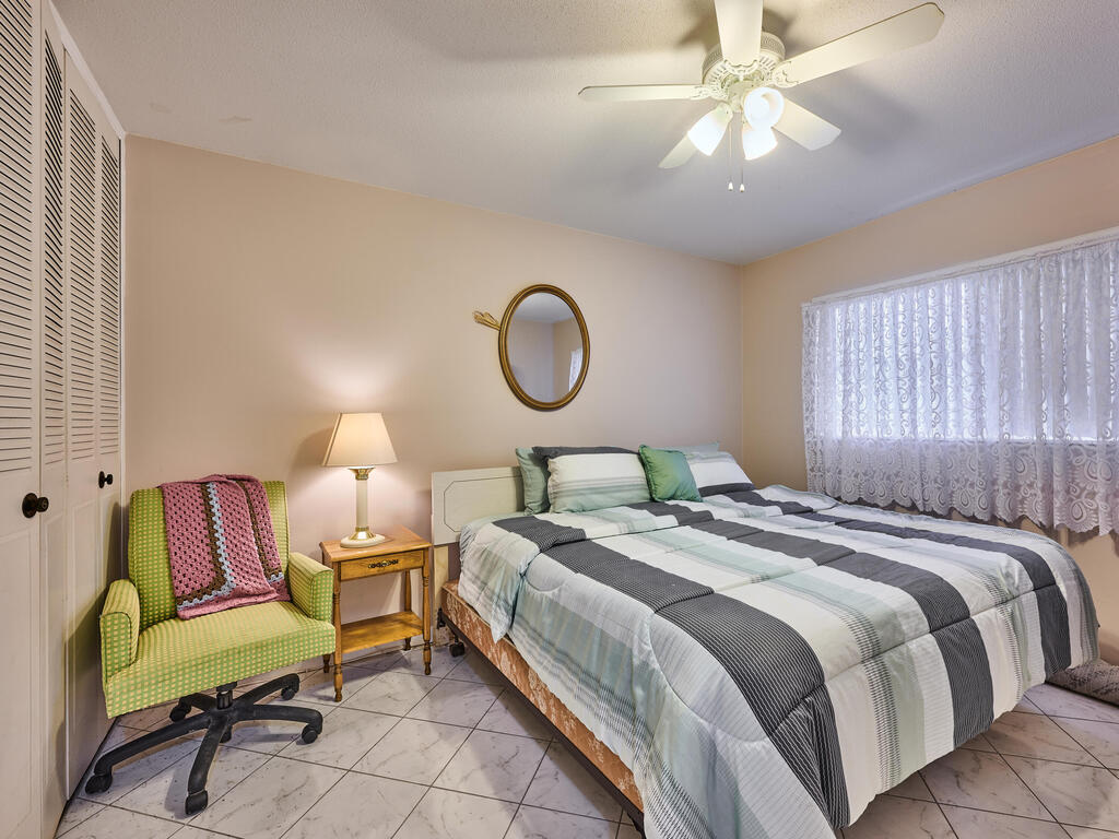 Enjoy the best of South Florida living in this fully furnished, light and bright 2-bedroom, 2-bathroom seasonal rental located in the highly desirable 55+ community of Cresthaven Villas in West Palm Beach. This well-maintained villa features ceramic tile flooring throughout and a spacious layout designed for comfort and ease. The cheerful kitchen is equipped with all major appliances, cookware, and dishware--perfect for seasonal residents looking for a turnkey stay. The sunroom offers flexible space for reading, relaxing, working remotely, or pursuing a hobby. The primary suite includes an en suite bathroom with a tiled walk-in shower and ample closet space. A second bedroom and full guest bathroom provide additional space for visitors or extra storage.