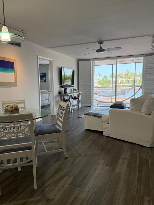 Welcome to your fully furnished / turnkey waterfront rental home. Also available seasonally as well @ 4500m. This ground floor 2/2 sits right above water level on the Intracoastal Waterway. Very exciting! Live On a YACHT (almost). Located about a quarter mile north of the Banana Boat & Two Georges on the Intracoastal Waterway in Boynton Beach and 10 minutes from Atlantic Ave in Delray Beach. This tastefully decorated Turn-Key rental has in-unit wash and dryer, 1 assigned parking space, full storm protection,. All newer appliances and kitchen, HD flat screen TV's, new bedding and a HAMMOCK! Come live here and enjoy the vacation life!