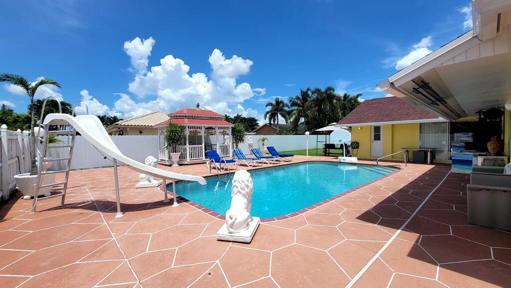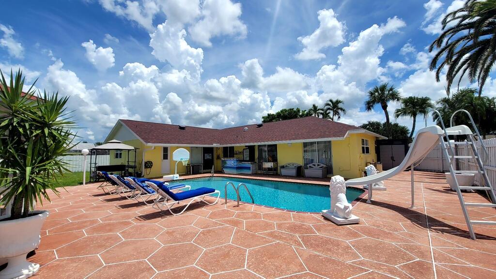 Very nice turnkey single story home 3/2 on corner lot with large fenced yard, big pool with water slide, basket ball hoop, large gas bbq grill & room for RV or boat on side yard. Downtown West Palm Beach, Clematis, City Place & Beaches only 20 minutes away. Updated kitchen & baths, only minutes from all horse venus, Whole Foods, Trader Joes, Publix, & Wellington Green Mall. Great house for your seasonal or short term off season rental.