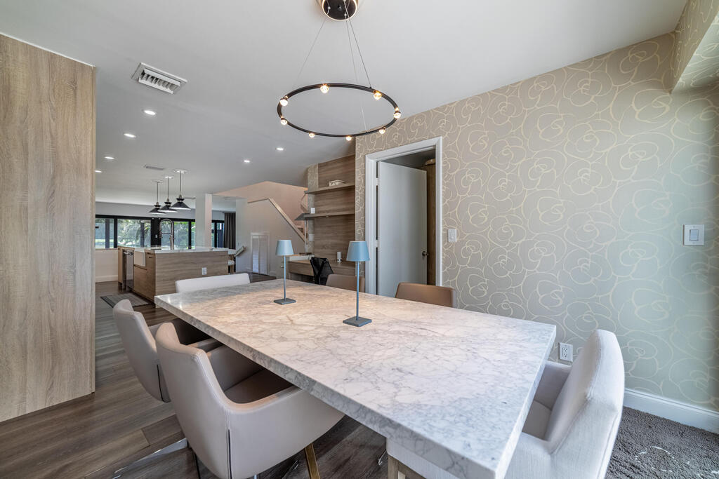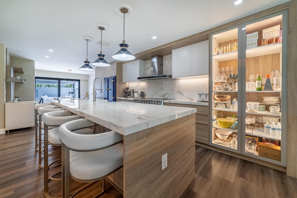 This beautifully renovated 3‑bedroom, 31/2‑bath villa is available unfurnished for annual lease. Enter the private courtyard from the two covered parking spaces and step into a spacious, welcoming foyer. An updated powder room is conveniently located on the first floor.The open and airy floor plan includes a cozy breakfast nook, ideal for relaxed mornings with family, and a breakfast bar that's perfect for casual meals or gathering while cooking. A separate dining room is available for holidays and entertaining. Step down into the living room with its wet bar area, or walk out to the sunroom and private patio/backyard space overlooking the golf course and lake -- the perfect spot for relaxation. The laundry room offers an abundance of cabinets and a