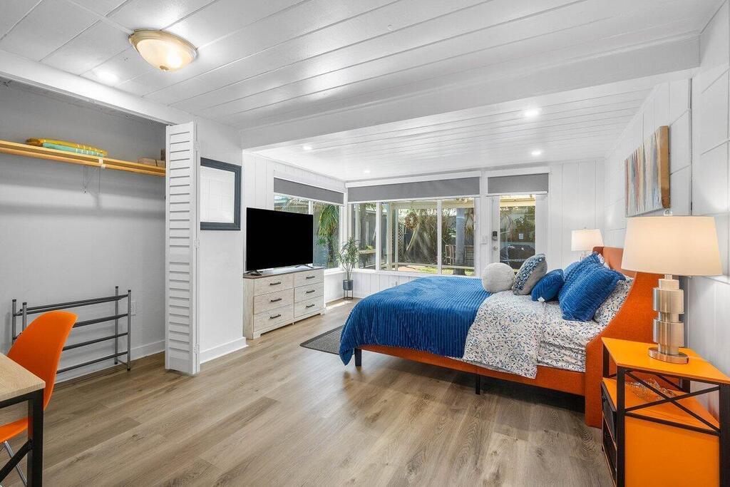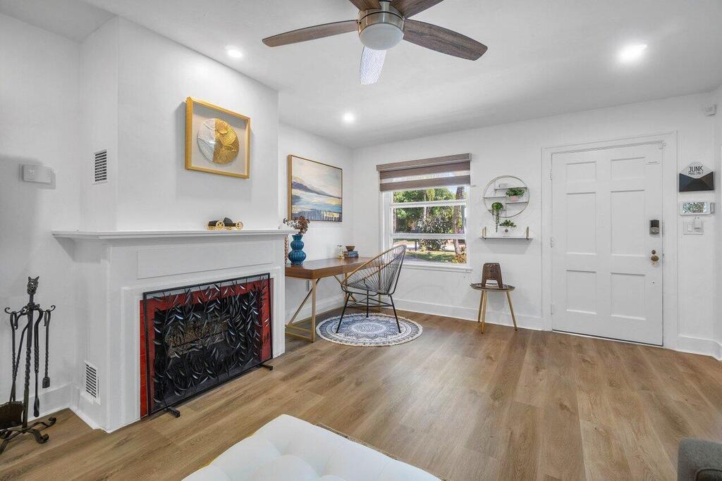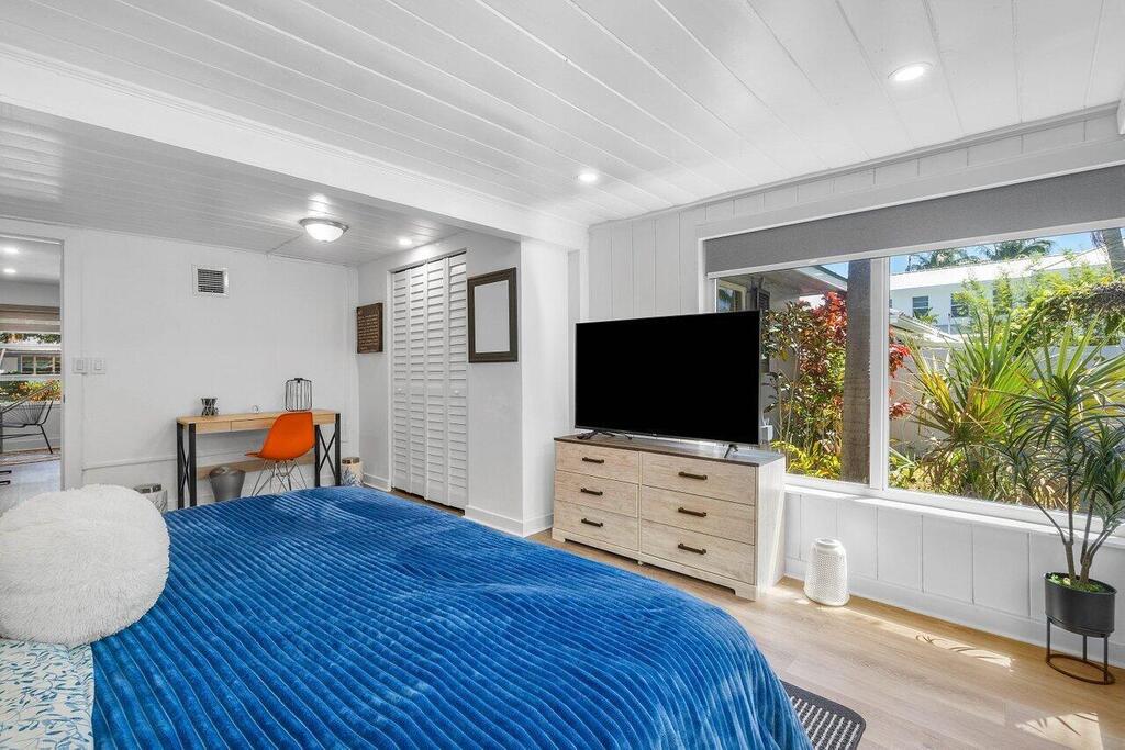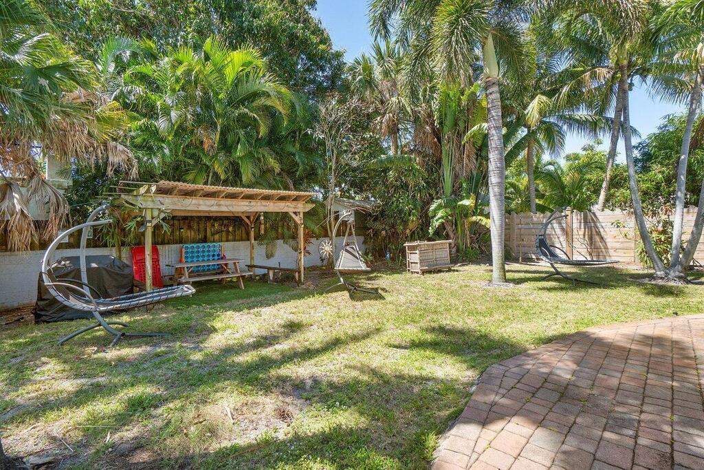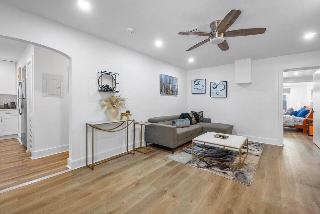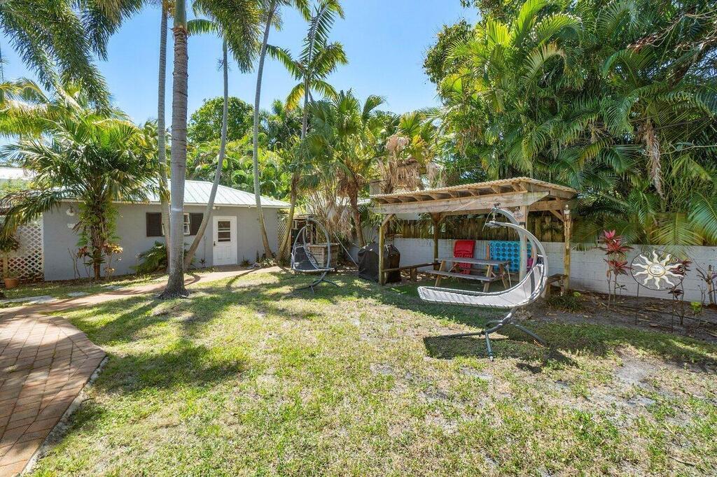 Walk to vibrant Atlantic Avenue and 5 minute stroll to Pineapple Grove Village. Only 1 mile to the beach from this beautifully updated cottage. This fully furnished and turnkey 2-bedroom, 1-bath apartment is located in the heart of Delray Beach. Available for annual lease or a minimum of four months during season and/or off season. This home comes fully equipped with everything you need to make you feel at home. Featuring a brand-new kitchen with new appliances, impact windows+shutters, new flooring throughout, both bedrooms comfortably accommodate king-size beds. Enjoy a fully equipped kitchen, security system, and a shared full-size washer and dryer on the property. Relax in the large fenced yard with a screened-in patio for your unit.No Cats. Dog are welcome with