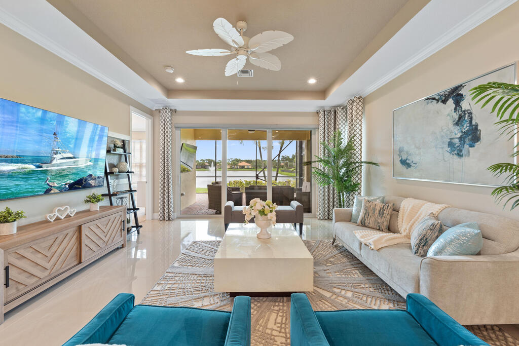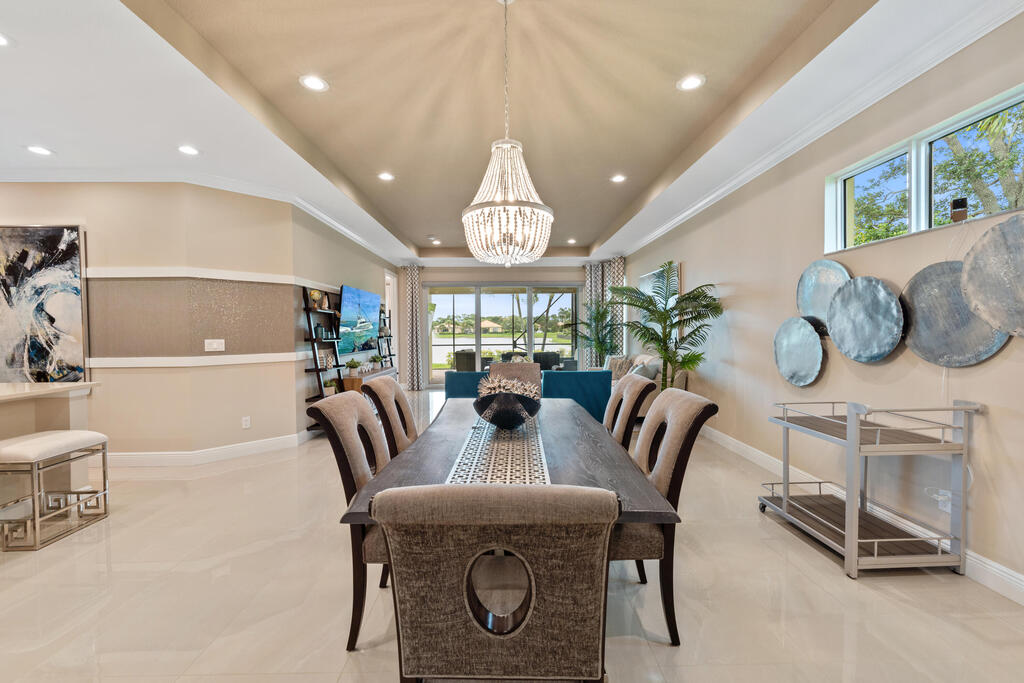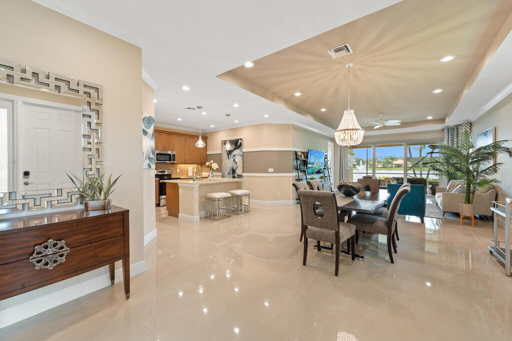 Luxury and ease of use all come together here. This stunning 3-bed, 2-bath home with high ceilings boasts spectacular long lake views with fountain that will take your breath away. It has been meticulously upgraded with designer finishes, creating a luxurious and sophisticated environment. Unwind in Tranquility, Solid CBS construction & impact windows and Doors ensures durability and peace of mind. Active Lifestyle Awaits, Just steps away from the clubhouse, tennis courts, and pickleball courts, you can easily enjoy a vibrant social life. No mandatory golf membership allows you to tailor your activities to your preferences. The HOA covers lawn care, cable, internet, and manned security