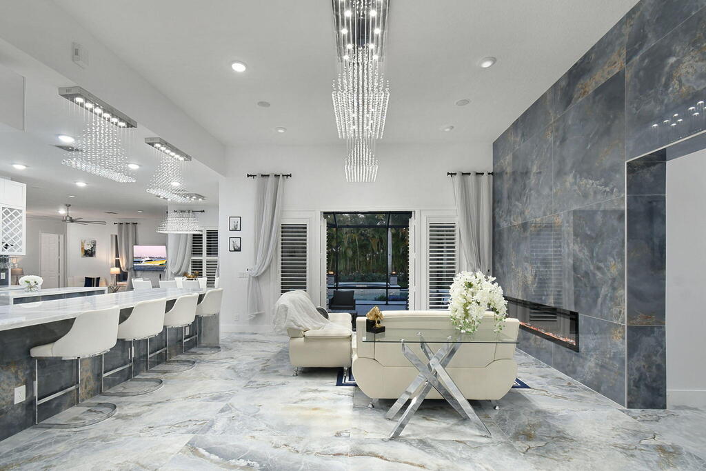 This lovely rmansion, redesigned to be a tranquil retreat, is just a short distance from the horse show. It sits on about 1/2 acre of land, offering privacy and great views of the golf course. With six bedrooms and four bathrooms, the house varies with a modern style and covers 3,352 square feet. The main living areas have stunning pool views, blending indoor and outdoor spaces perfectly. The property also includes a spacious three-car garage with lots of storage space. Everything in the house has been updated, including the roof, appliances, kitchen, flooring, and lighting. Located in a quiet cul-de-sac, this home backs onto the golf course, making it even more peaceful.