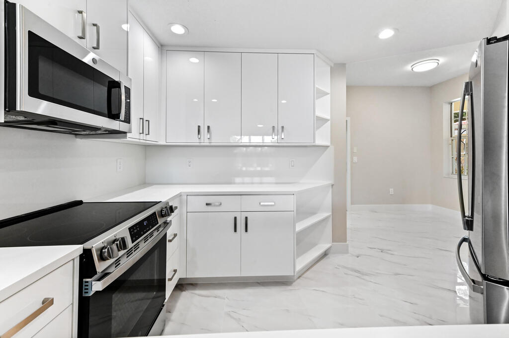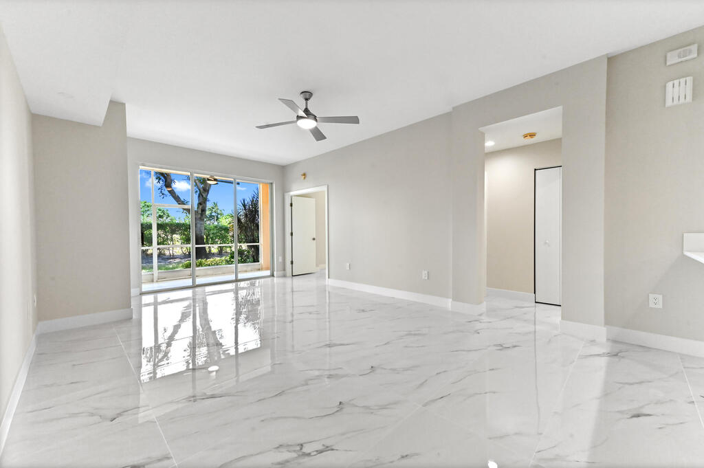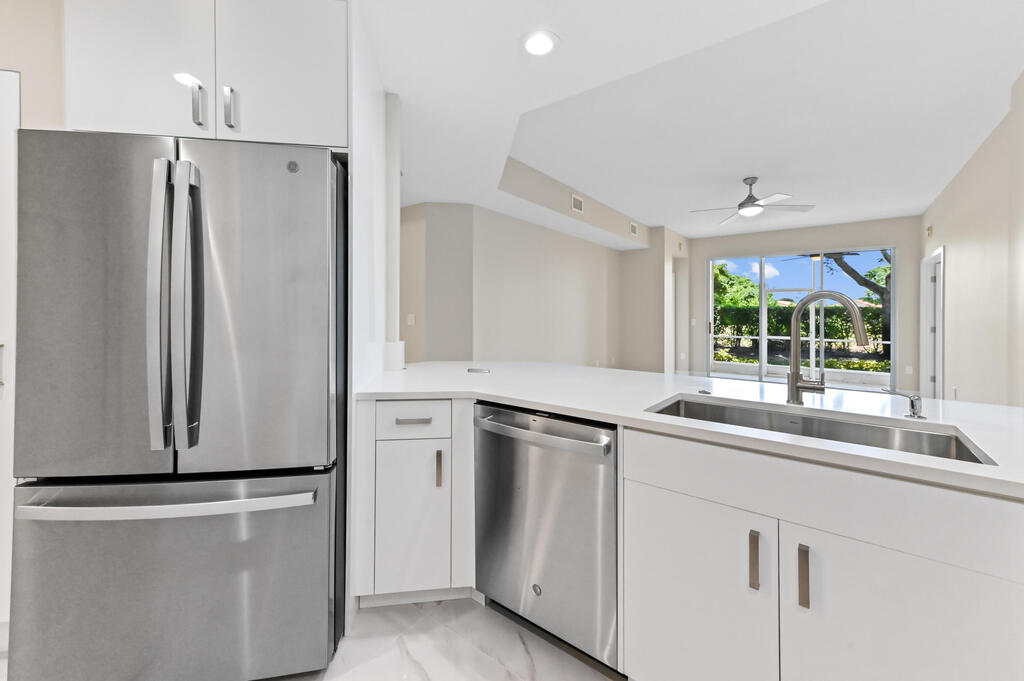 Introducing a sophisticatedly updated residence at 12510 Crystal Pointe Dr #102, located in the vibrant heart of Boynton Beach, Florida. This stunning ground-floor unit elevates the standard of modern living, boasting a complete top-to-bottom renovation with luxurious finishes and state-of-the-art features. Step inside to discover a bright, open living space graced with porcelain tile flooring throughout, echoing the elegance of natural stone and infusing the home with an air of refined opulence. The living area seamlessly connects to the well-appointed kitchen and dining space, offering a versatile layout perfect for both tranquil living and entertaining.