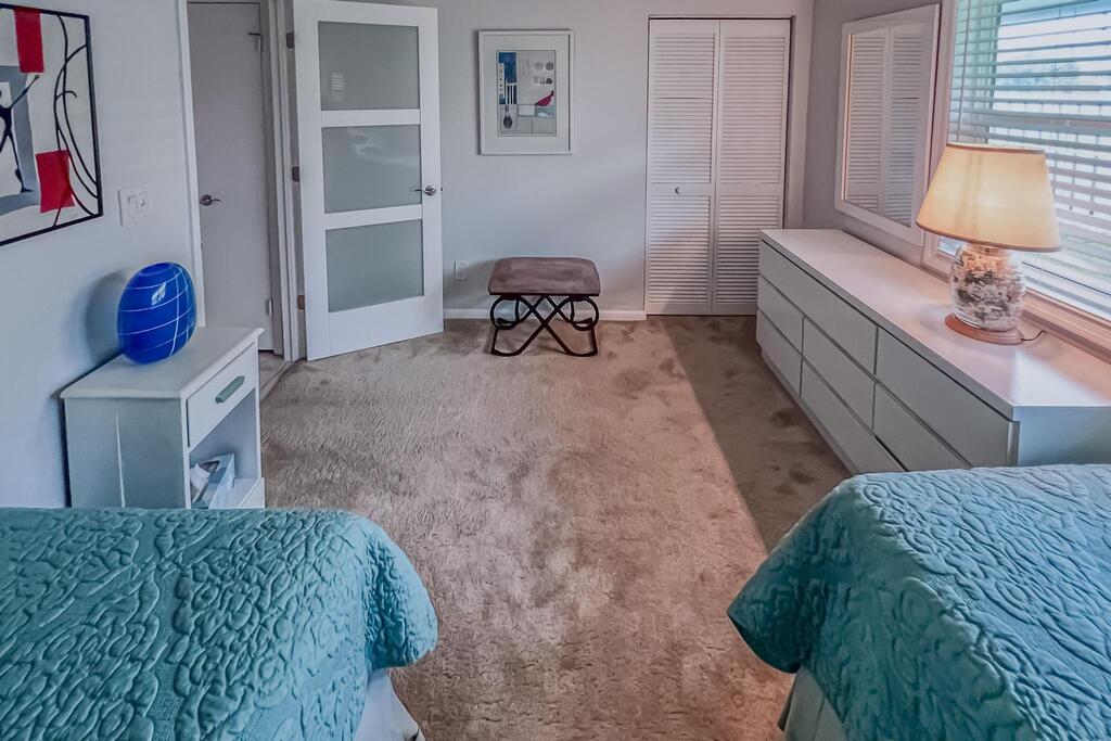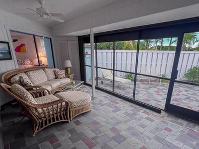 Rented for 2025 season, Super Location, minutes to beautiful Beaches, Golf, Riverwalk Restaurants, Theaters, Shopping. Community offers large pool, tennis, pickleball, racquet ball courts, suffleboard and bocce too. Furnished, 3 bedrooms, king in primary, twins in guest, 3rd bedroom is den/office with futon couch, newer appliances,washer, dryer. Screened in porch, fenced patio has gas grill, 2 assigned parking spaces.