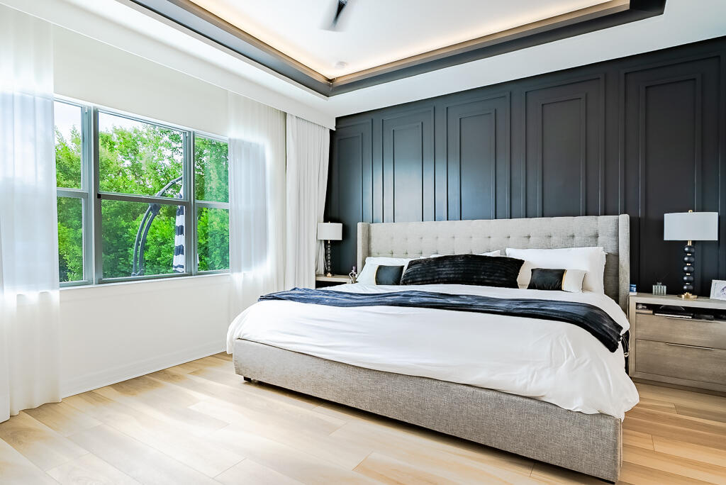 Long or short term(4 months min) non-furnished rental. Also for sale: RX-11023246. Come check out this property, boasting luxury and top tier finishes, This NEW construction home offers both functionality and elegance. The combination of lake views, a corner lot on a cul-de-sac, and a pool oasis makes for a serene and inviting atmosphere. 3 bedrooms(PLUS 2 flex rooms-a den and sunroom, 4 bathrooms, plus the 3 car garage is a show stopper! Equipped with luxury vinyl plank (LVP) flooring. Every bathroom, including the cabana bath is designed with full height wall tile and porcelain tile floors. The primary suite is a true retreat, featuring a grand walk-in closet with custom built-ins, tray ceiling with custom lighting, a board and batten wall feature and more.