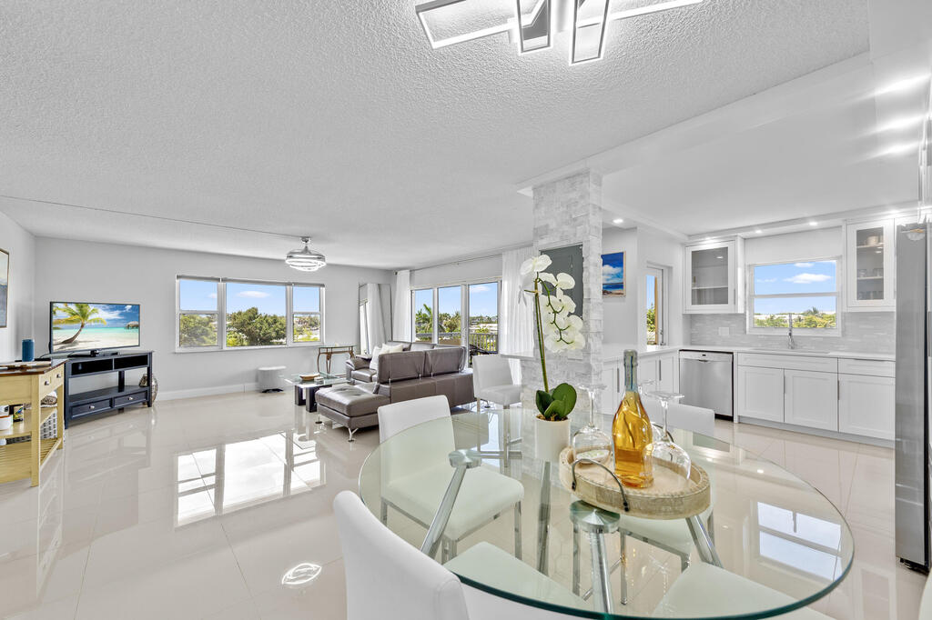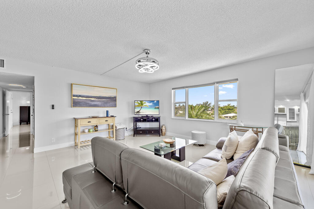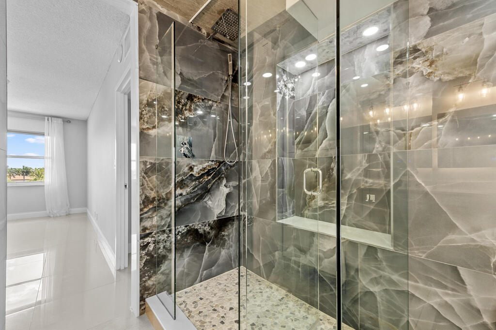 Amazing location just steps from the beach! Gorgeous unit, fully remodeled with porcelain floors throughout. Beautiful Calacatta porcelain bathrooms -- spacious shower in the master and bathtub with glass doors in the second bath. Stunning all-white kitchen with quartz countertops, white cabinetry, and stainless steel appliances. Impact Windows and Sliding Glass doors. Huge walk-in closet in the master bedroom. Great area for biking, running, or walking -- with beach paths and the intracoastal nearby. Building offers gym, recreation room, sauna, grills, and a heated pool. Close to shops, dining, and beach access.