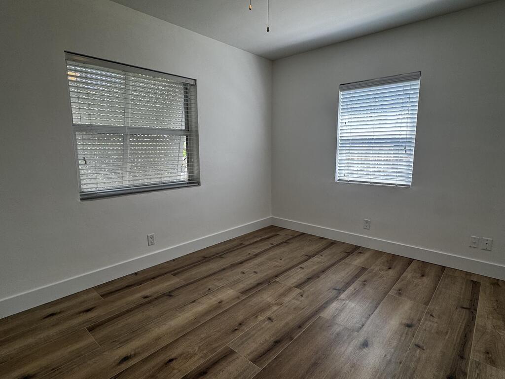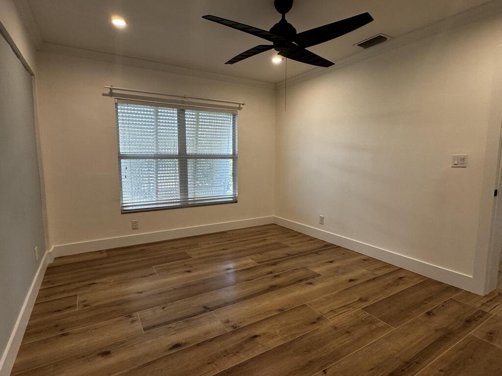 This beautifully renovated 3 bedroom, 2 bathroom home blends modern comfort with timeless style. Recently updated for its next tenant, the home features brand-new tile flooring throughout and an expanded, spa inspired bathroom with high end finishes. The chef's kitchen is equipped with stainless steel appliances, granite countertops, and an oversized bar, perfect for casual dining or entertaining. Enjoy an open layout with space for a formal dining area or lounge. Outside, the large backyard offers lush landscaping, a spacious storage shed, and plenty of room for parking. All just minutes from top dining, shopping, and the beach.