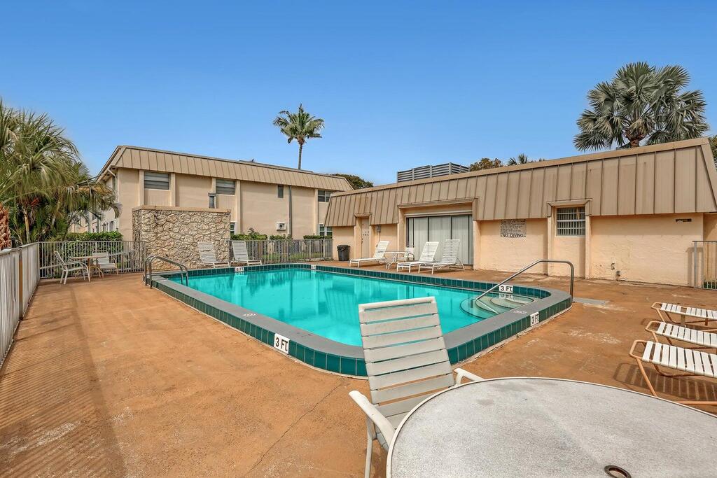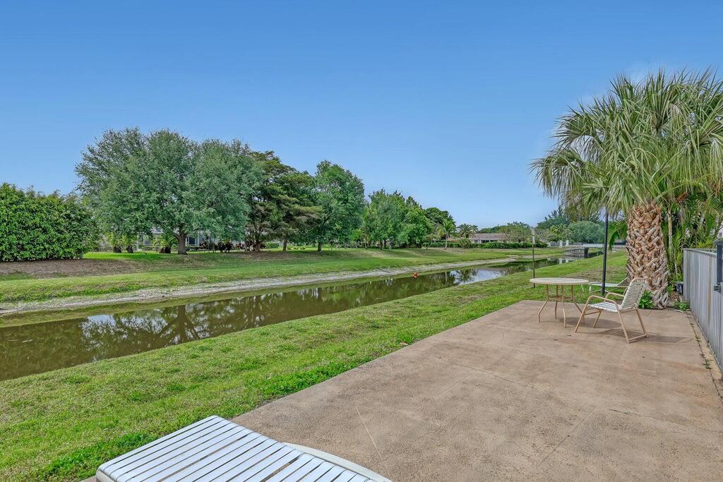 FIRST FLOOR (NO STAIRS) Sit back with your favorite beverage and enjoy the sunsets on the outside Patio overlooking water and wildlife. Perfect patio for entertaining friends. Just minutes from I-95 and within walking distance of good restaurants, coffee places, and shopping. HOA INCLUDES: Cable, water, sewer, and exterior property.