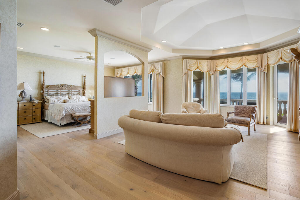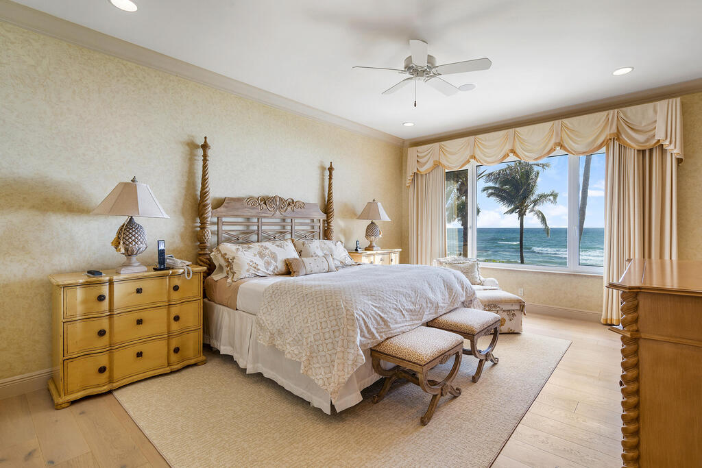 Direct Oceanfront Elegance in Ocean Ridge, FL...Nestled within the coveted enclave of Ocean Ridge, this spectacular oceanfront estate offers an unparalleled blend of privacy, sophistication, and coastal splendor. Commanding nearly 120 feet of direct Atlantic Ocean frontage, the residence is a sanctuary of refined living where the rhythms of the sea meet timeless architecture.Beyond the gated entry, lush tropical landscaping ushers you into a world of elegance--featuring soaring ceilings, expansive glass ocean views, and curated finishes throughout. The open-concept design flows effortlessly from the grand entertaining spaces to multiple outdoor terraces, all framing breathtaking sunrise views and sea breezes.Perfectly positioned between Delray Beach & Palm Beach.