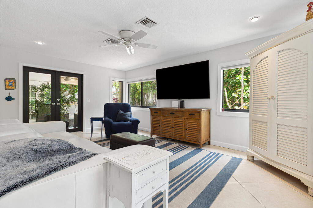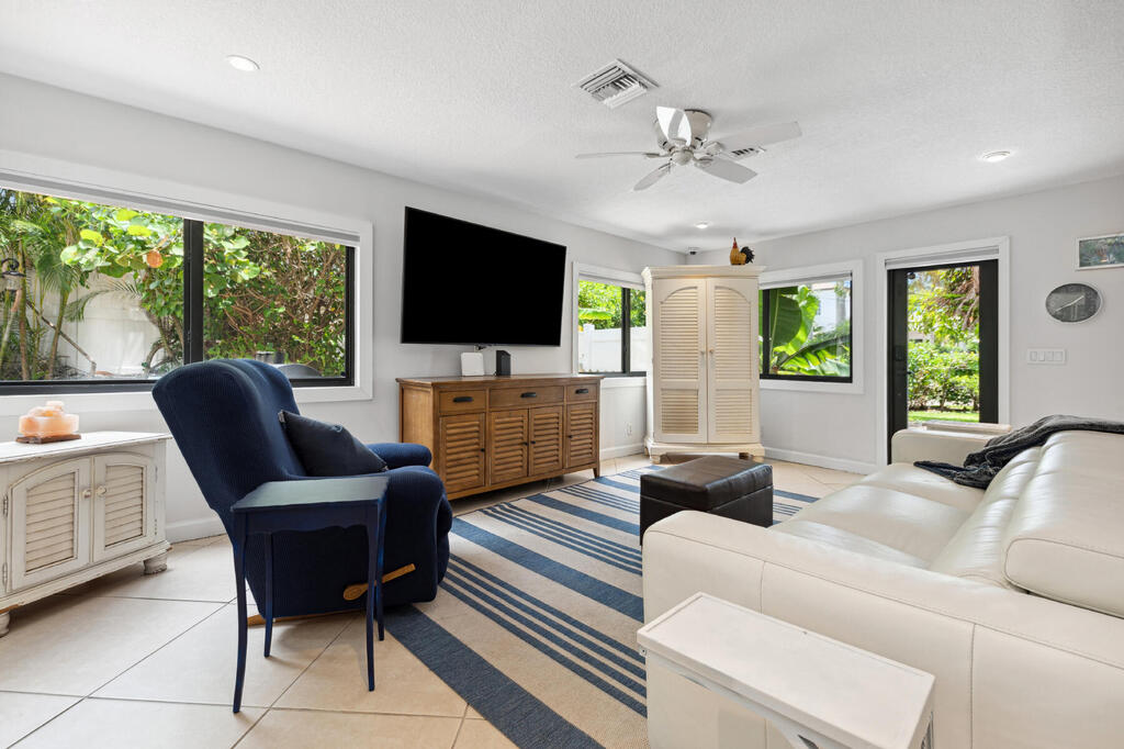 Discover the timeless allure of Florida living with this charming residence, perfectly nestled between the Intracoastal Waterway and the tranquil beach. Situated on a large corner lot, just a short walk from the sandy shores and within easy walking distance to vibrant Atlantic Avenue, this home offers an unparalleled blend of luxury, convenience, and Old Florida charm. The property features 3 bedrooms, including 2 primary suites, one of which boasts a whirlpool tub and both bedrooms have big screen TVs. The open and inviting living area is flooded with natural light through high-impact windows. It includes a baby grand piano, two guitars, and a working fireplace, making it perfect for both entertaining and relaxing. The family room is equipped for the ultimate movie night experience,