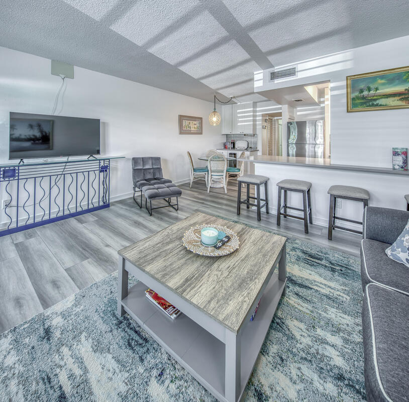 New, Clean and Comfy Ocean Front 1/1 - Enjoy your own beach. Kitchen with additional prep-bar and drink bar with wine/beverage fridge Large Dining and Living areas with Luxury pull-out for guests Large flat-screen with all utilities included Ground floor unit, no stairs, park outside entry Property enjoys Pool, Storm protection and your own Beach!