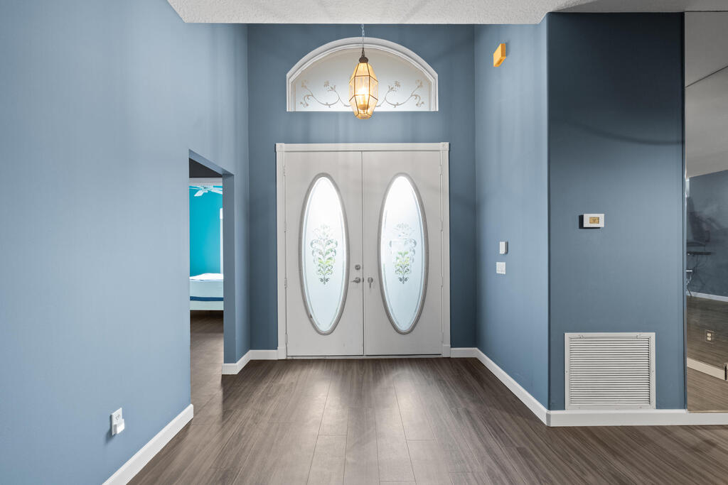 - Interior FeaturesCustom Mirror, Fireplace(s), Foyer, Pantry, Roman Tub, Split Bedroom, Volume Ceiling and Walk-in Closet