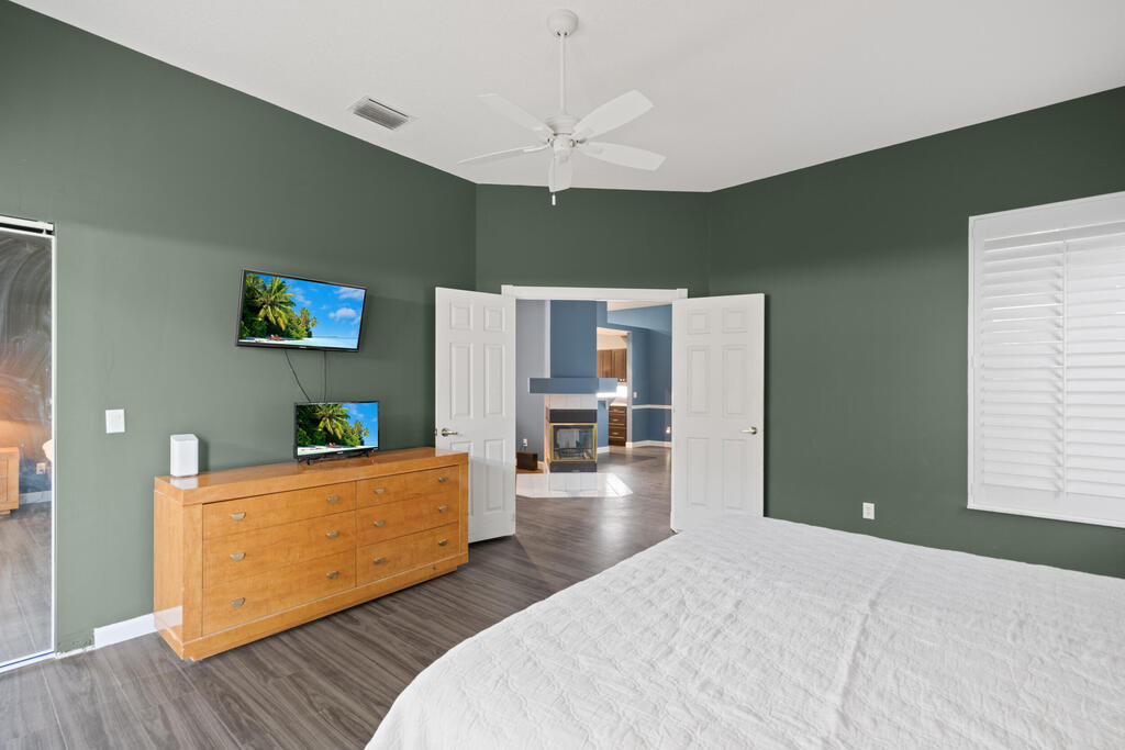 Spacious 2BR + Den, 2BA CBS corner lot home w/2-car garage in the gated 55+ community of Kings Isle (Isle of Capri). Features volume ceilings, split floorplan, eat-in kitchen w/breakfast bar and pantry, vinyl/tile flooring, fireplace, and plantation shutters. Primary suite offers walk-in closet, roman tub, dual sinks, and a separate shower. Recent upgrades include new kitchen cabinets, new flooring, new roof, and updated plumbing--all within the past 24 months. Screened patio overlooks a shaded tree-lined backyard. Full storm protection with accordion and panel shutters. Pet-friendly. Resort-style amenities: a clubhouse, pool, fitness center, tennis, billiards, and more. HOA covers lawn care, cable/internet, and security. Close to shopping, medical, dining, I-95. Owner covers HOA Deposit.
