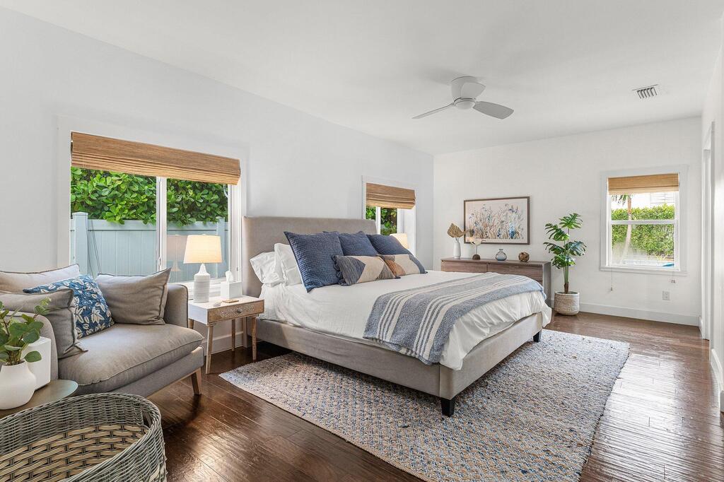 Available November and December 2025. Incredible Furnished Rental near Downtown. Totally renovated 3 BR/ 3BA Art Deco, pool home with detached Guest Cottage/Efficiency. Designer finishes, spacious bedrooms, Impact windows, whole home generator, tankless water heater, gas fireplace, wood floors throughout and a chef's dream kitchen! Private and Tranquil fully fenced in lushly landscaped backyard with Saltwater pool. A short walk to the Beach, Pineapple Grove and Atlantic Avenue for fine dining, shopping and entertainment. Move right in and enjoy the Delray Beach lifestyle! No HOA, quick move-in, Available for Short or longer term