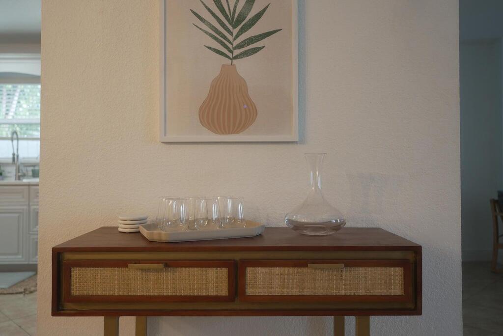Available for season or short term Historic College Park in Lake Worth Beach bordering the south end of West Palm. Mid Century modern home featuring 3 bedrooms 2 bathroom + a den. Off Street parking for 2 cars. The home features hurricane impact glass windows and doors, full house reverse osmosis system plus a Kinetico water softener system. The home has a new roof, newer AC unit and gas appliances for energy efficiency. The main living area features vaulted ceilings highlighting the art deco construction style. Kitchen is open to the living area making the home spacious and perfect for entertaining. Gas stove with vented hood is a chef's dream along wide single basin sink and commercial faucet and new fridge. Master bedroom features on suite. You will find 2 other bedrooms and bathroom