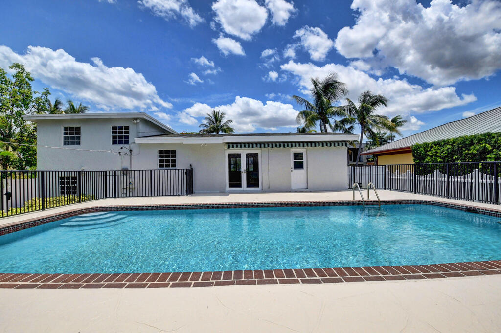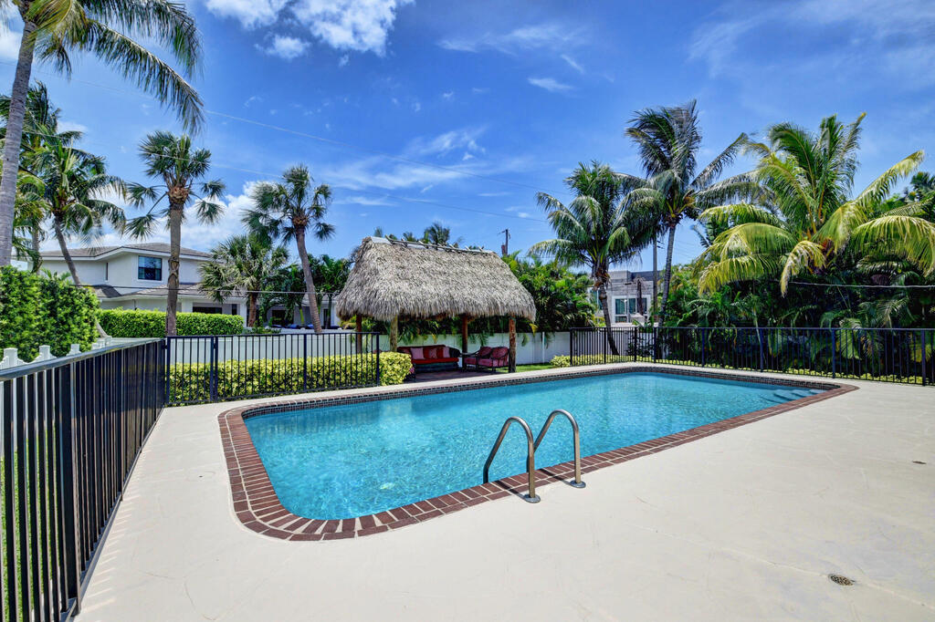 Gorgeous single family pool home at Golden Triangle @ East Boca Raton! Beautiful 3 bedroom, 2 bath, totally updated, newer kitchen and bathrooms, tile floor throughout, wine cooler, abundance of natural light, smart fridge, LED mirrors in bathrooms, large eat-in kitchen area, California closets in all rooms. Ideal summer backyard, perfect for entertainment and outdoor activities! 1.5 car garage, Tiki hut, fire pit, sunshade canopy & more! LAWN AND POOL MAINTENANCE INCLUDED with the rent. Excellent location one block from Lake Wyman Park w/ tennis courts & kids playground, A-rated schools, walk or bike to the beach, close to shopping, Downtown Mizner Park, Royal Palm Place and the best Boca Raton has to offer! 2 miles to I-95, Annual Lease Only. NO HOA. Call today for more information!