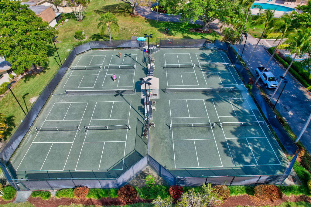 - Exterior FeaturesAuto Sprinkler, Covered Patio, Screen Porch, Screened Patio, Tennis Court and Wrap Porch
