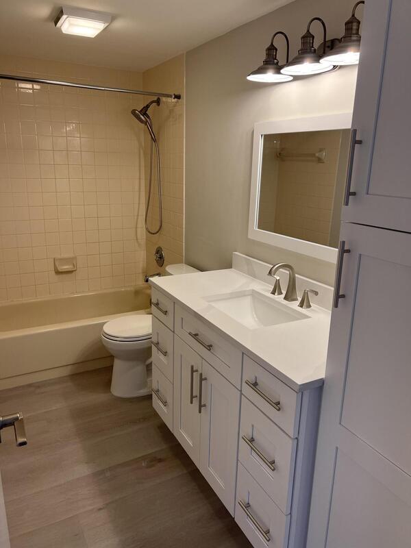 Newly remodeled River North townhome features a new kitchen with Ship Lap, SS appliances, white cabinetry and beautiful quartz counter tops. All bathrooms have been updated. Tile and wood plank laminate flooring on first floor with Berber carpet upstairs. Accordion hurricane shutters. Private courtyard patio with storage unit and designated parking space. Don't miss the opportunity to live near Jupiter Beach, Juno Beach pier and Bluffs shopping plaza!!