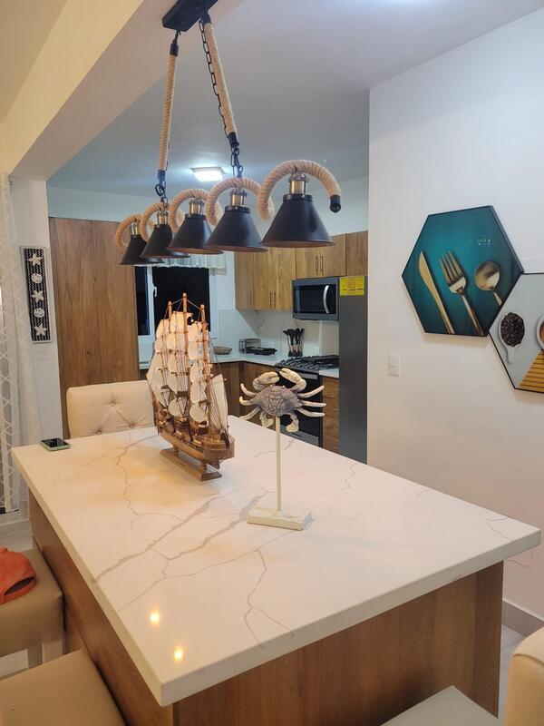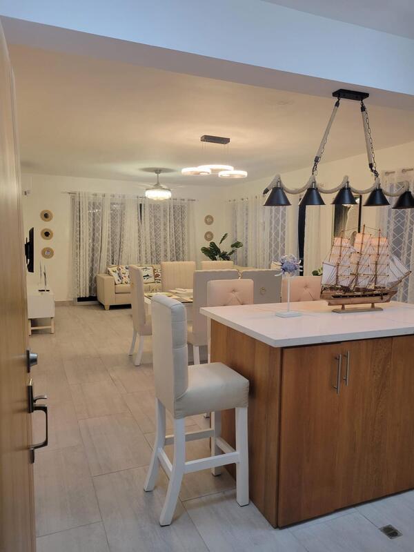 Spectacular three-bedroom, two-bathroom apartment on the third floor, for monthly or annual rent. Fully furnished! Located in the Sosua area (Laguna Beach). From here, you can see the cruise ships and walk to the beach in just two minutes. Enjoy your vacation in this beautiful place, or live and work inspired from here! With breeze, beach, ocean, and scenery!