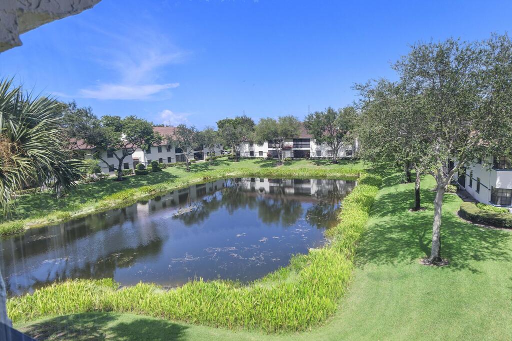 Soak in stunning lake views from every room in this top-floor, elevator-access condo--offering unmatched privacy with no upstairs neighbors! This spacious 3-bed, 2-bath home in Platina's desirable Illustre Village is bathed in natural light and features an open-concept layout perfect for relaxing or entertaining. Step onto your screened balcony and enjoy the best lake views in the building. The split-bedroom plan adds privacy, while vaulted ceilings and a bright eat-in kitchen enhance the airy vibe. Full-size washer/dryer, plenty of storage, and resort-style amenities: pool, cafe, theater, pickleball, gym, and more--without country club fees! Don't miss your chance to live above it all.