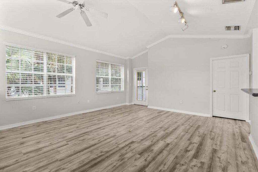 Clean and nice freshly painted, no carpets 2nd floor 2 bedroom 2 bath unit with private screened in balcony. Luxury vinyl laminate flooring throughout. Newer stainless Whirlpool appliances Light grey paint color palette for a crisp, clean look. Estates of Stuart offers a community pool, exercise room and property manager on site. Tenant pays water and electric. Basic cable included. 1st month and security.