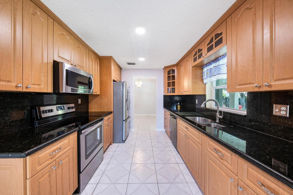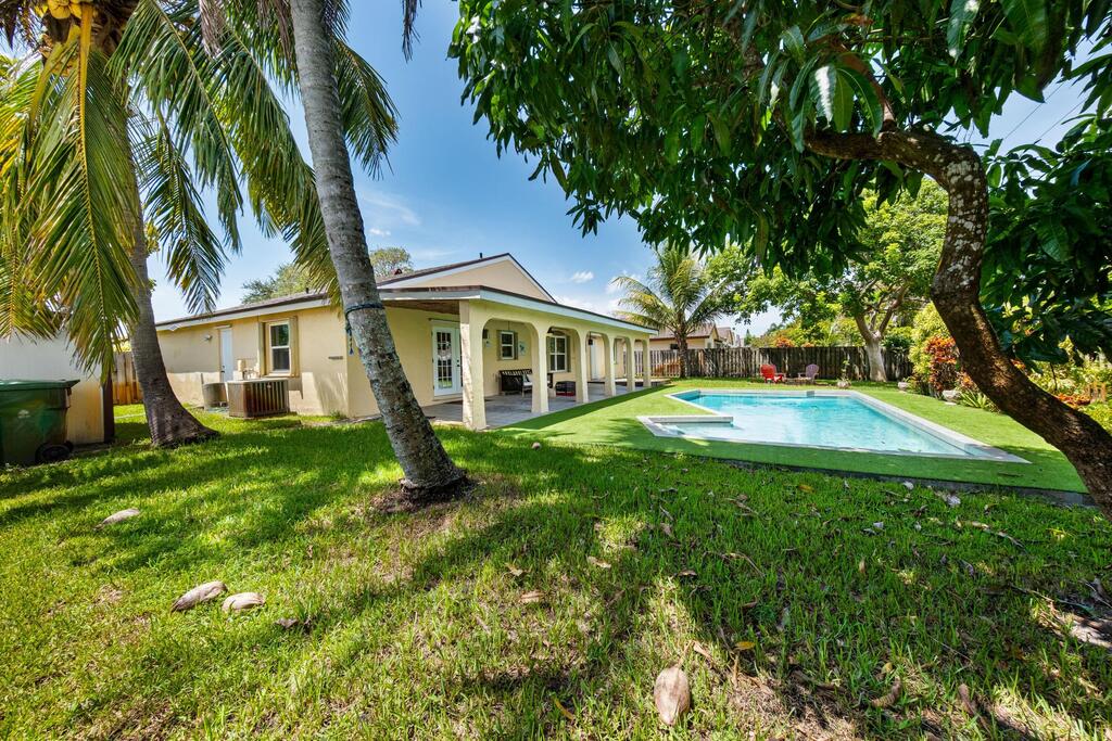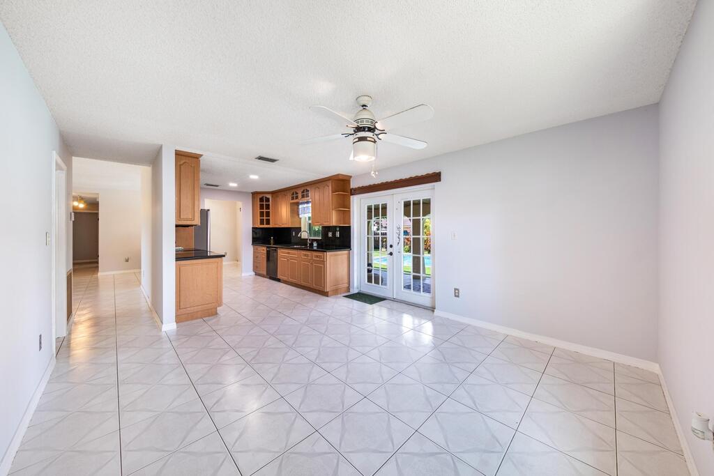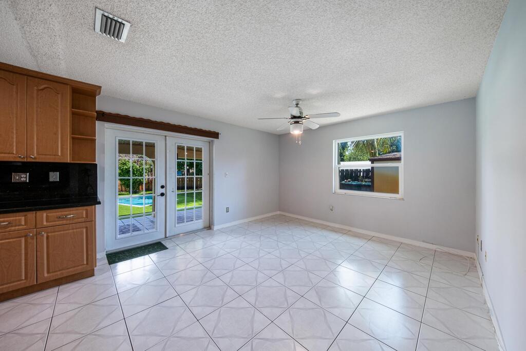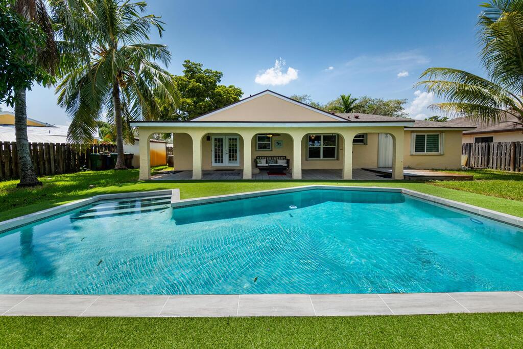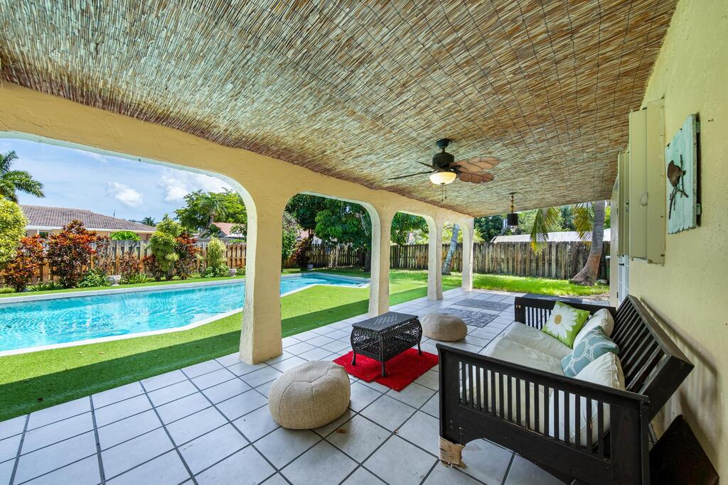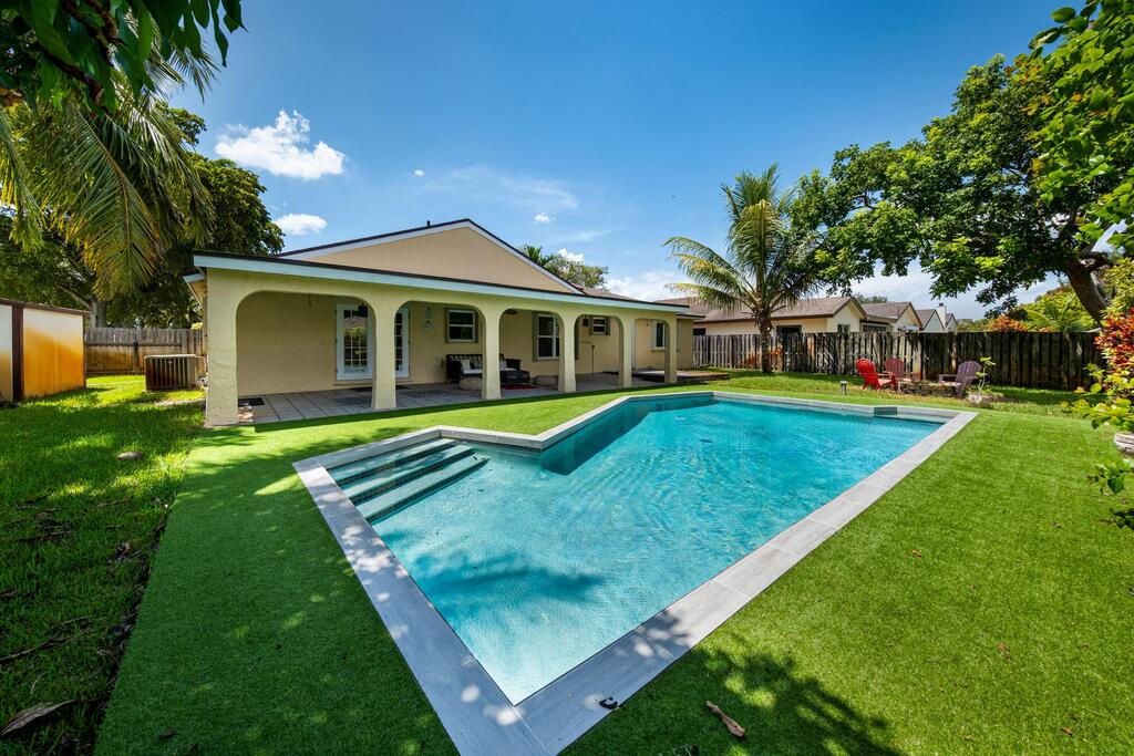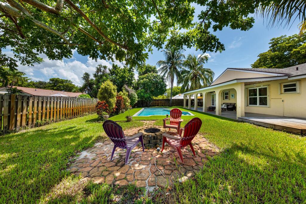 No HOA Approval, Fast Move In! Situated on a spacious 10,000 SF lot, this home offers a private backyard with a large pool, low maintenance turf, a covered concrete patio, and a built in bonfire area for relaxing evenings under the stars. Enjoy peace of mind with hurricane impact windows paired with accordion shutters for additional protection. Inside, you'll find two living areas, a dedicated dining space, and a versatile bonus room perfect for a pantry or small office. The master and guest bathrooms have been updated, and the kitchen features granite countertops with a beautiful view of the pool. Just a short walk to the park. Located near top-rated A+ schools, this home is ready to welcome you!