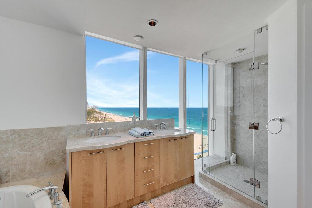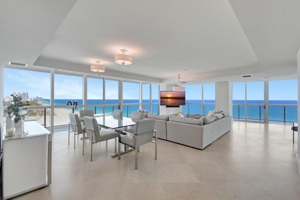 Available beginning Jan 2026. Presenting the premier residence of the building, a stunning 3-bed, 3.5-bath NE corner condo boasting over 3,000 sq. ft. of luxurious living space, directly on the sand. With unobstructed 180+ degrees ocean views, this exquisite condo also showcases panoramic vistas of the marina home to the world famous boat show and the downtown skyline. Designed for sophistication and comfort, it features a formal dining area, ensuite bathrooms, and oversized bedrooms with custom walk-in closets. High-end finishes include Thermador appliances, sleek Italian cabinetry, and floor-to-ceiling windows that flood the space with natural light. Two oversized private terraces. Short term or annual lease. Fully furnished. Deeded private beach access with cabanas.