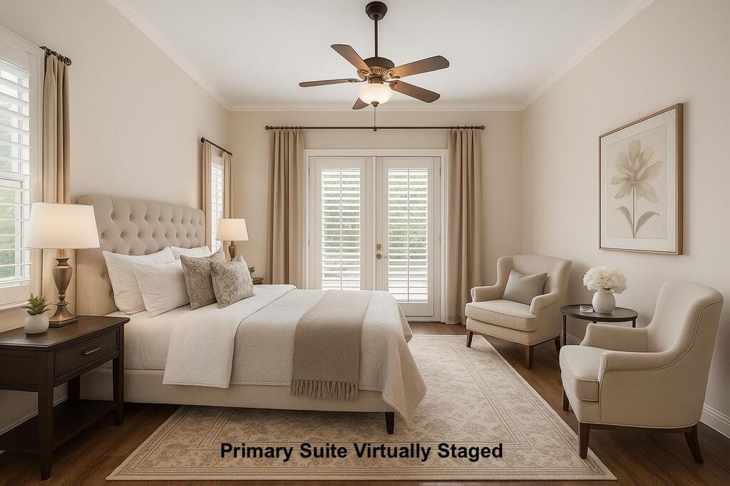 This luxury annual rental is available. Custom 3 Beds + den, 3 Bath, 3-car garage. Relax outside by the solar heated, screened pool and patio. High quality wood cabinetry and granite in kitchen and baths. Surround sound speakers, tinted windows, and plantation shutters throughout. Fountain highlights the new, resurfaced gorgeous pool and patio area. Located on one of the largest and most private lots in the guard-gated community of Cobblestone. The home is an ideal escape for sophisticated country living. The outdoor living space is both private and entertaining with a natural preserve behind the property. The spacious primary bedroom is accentuated with French doors leading to the pool/patio area with plantation shutters for privacy. Open floor plan with french doors to pool and pati