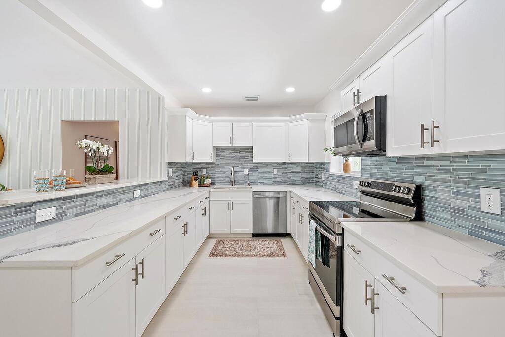 Welome to Casita SoSo, Available November & December $15,000/monthLocated in West Palm Beach's highly desirable South of Southern (''SoSo'') neighborhood, this newly renovated single-story home combines high-end design, modern technology, and resort-style amenities. With a circular drive and lush tropical landscaping, it's just minutes from the Intracoastal, beaches, downtown West Palm Beach, and Palm Beach International Airport. The light-filled interior welcomes you with Thibaut wallpaper in the entry and flows into an open-concept living area with new floors, Bose surround sound, and Sonos mobile speakers for entertainment. The gourmet kitchen features quartz countertops, stainless steel appliances, reverse osmosis water filtration, and abundant storage, connect