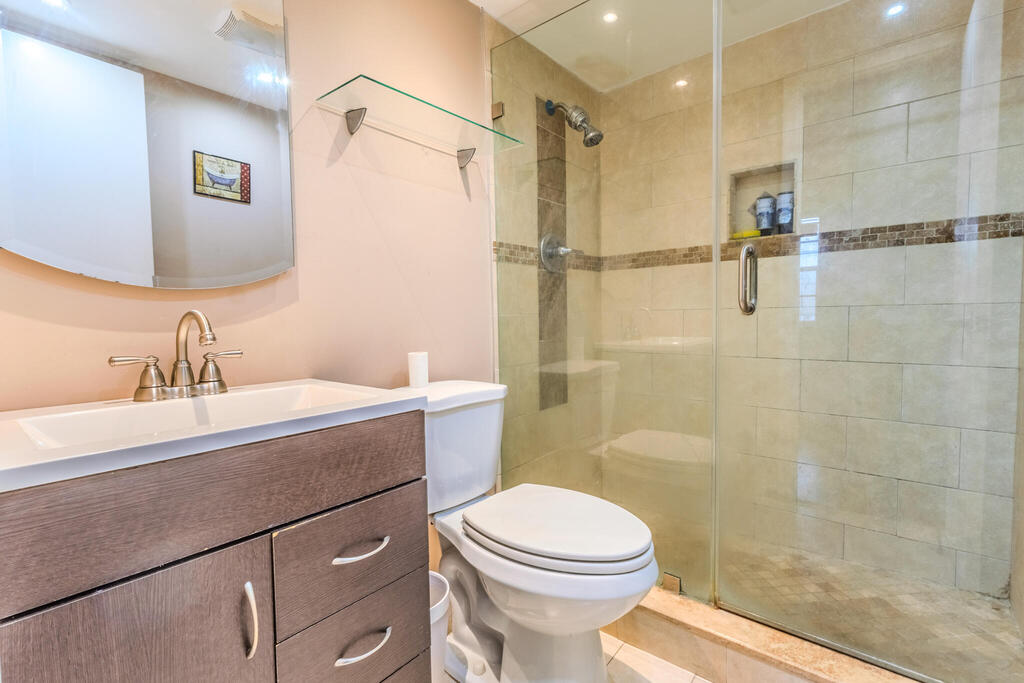 Spacious 55+ condo with 2 en-suites. Fully upgraded bathroom and open-concept kitchen. The primary en-suite has large walk-in closet. Both bathrooms have walk-in showers. Laundry room on each floor. The enclosed balcony overlook the pool. Walking distance to shopping, dinning, and transportation. Community has a tennis court. Assigned parking 138 is at the building entrance. This is a Must see!