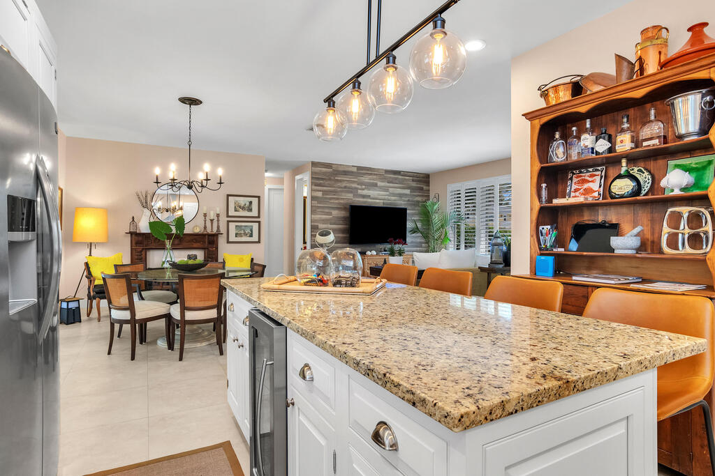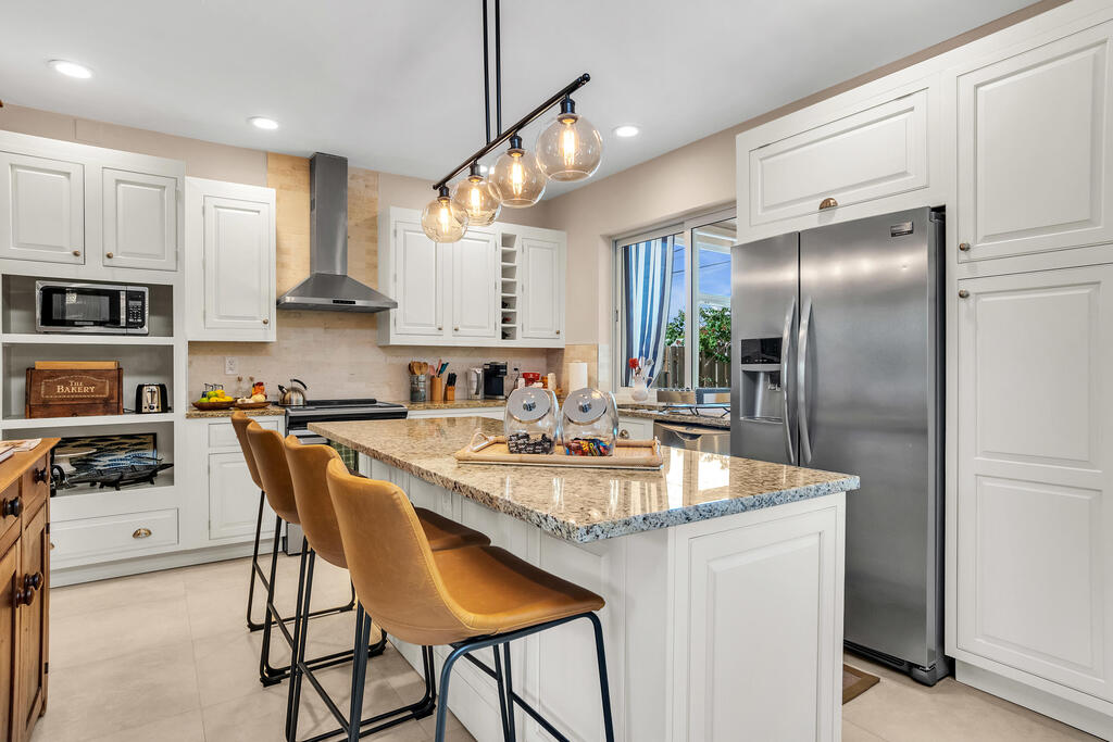 Absolutely turnkey and beautifully renovated, this move-in ready home delivers a luxurious, like-new living experience with every detail thoughtfully upgraded. Featuring 2 bedrooms, 2 bathrooms, and a 1-car garage, the home offers a spacious open floor plan with soaring ceilings and enlarged door openings that enhance its modern, airy feel. The property showcases top to bottom renovations, including a fully updated kitchen with white custom cabinetry, granite countertops, stylish backsplash, and a center island ideal for dining and entertaining. Enjoy elegant finishes throughout, such as large-format porcelain tile, rich hardwood accents, and recessed dimmable lighting. Both bathrooms and the laundry room have been completely redone with high-end finishes.