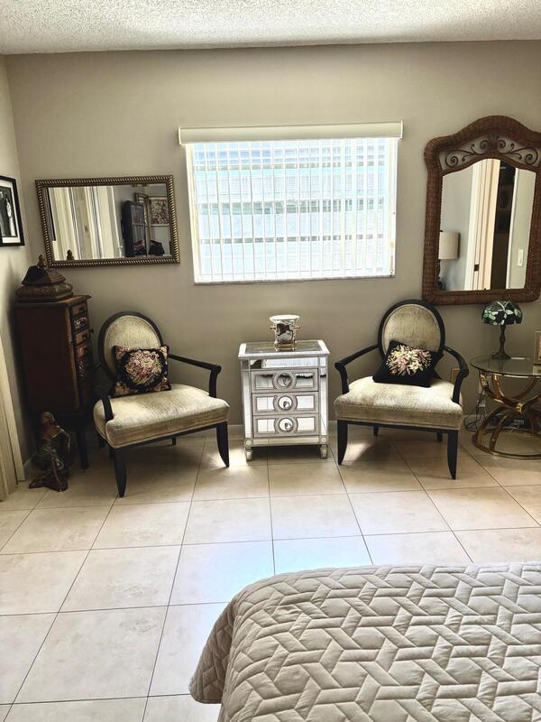 very very clean and updated 1/1.5 ground floor Normandy 'M' unit. Updated bathrooms and kitchen. Kitchen boasts stainless steel appliances which include mounted microwave and dishwasher. Lovely neutral colored tiled flooring. Plenty of storage space. Garden view from your patio. Washer/dryer in your patio utility closet. Furnished nicely. Close proximity to the Flanders Clubhouse and pool area.