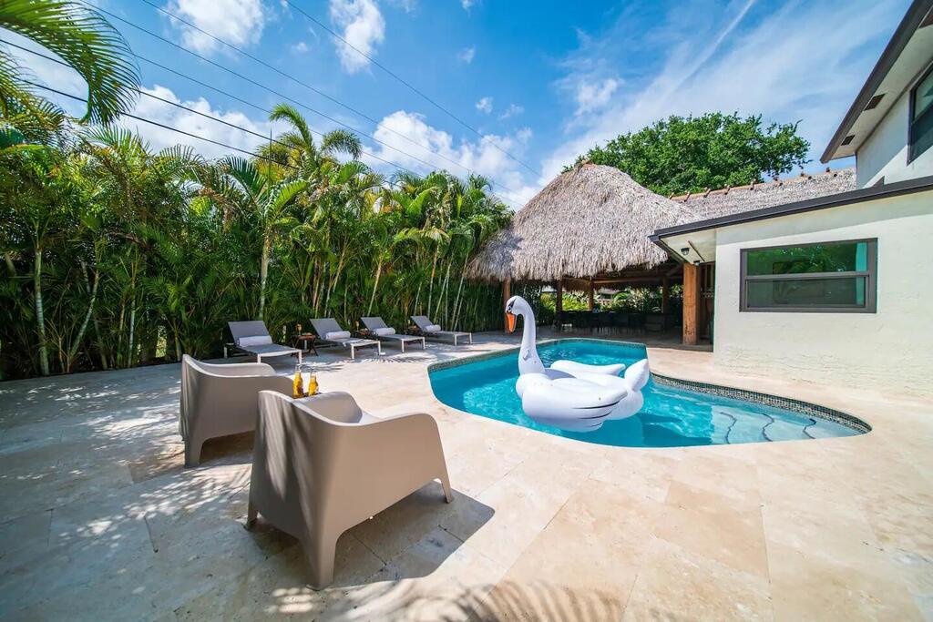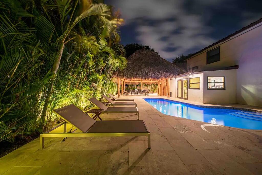 : AVAILABLE FOR SEASONAL RENTAL,OFF SEASONAL RENTAL OR ANNUAL RENTAL. PRICES VARY/FLEXIBLE ON LEASE TERM.*PRICE LISTED IS ANNUAL RENT/OFF SEASON SUMMER RENT. Spacious 4 bedroom 3 bathroom Tiki home located minutes from Delray Beach & Downtown Atlantic Ave. Our recently renovated home includes 3 suites with king sized beds/private bathrooms and 1 room with 2 queen sized beds & a sofa bed. Large kitchen, dining/living area leads to private back yard featuring a stunning Tiki Hut & loft, saltwater heated pool surrounded by palm trees.