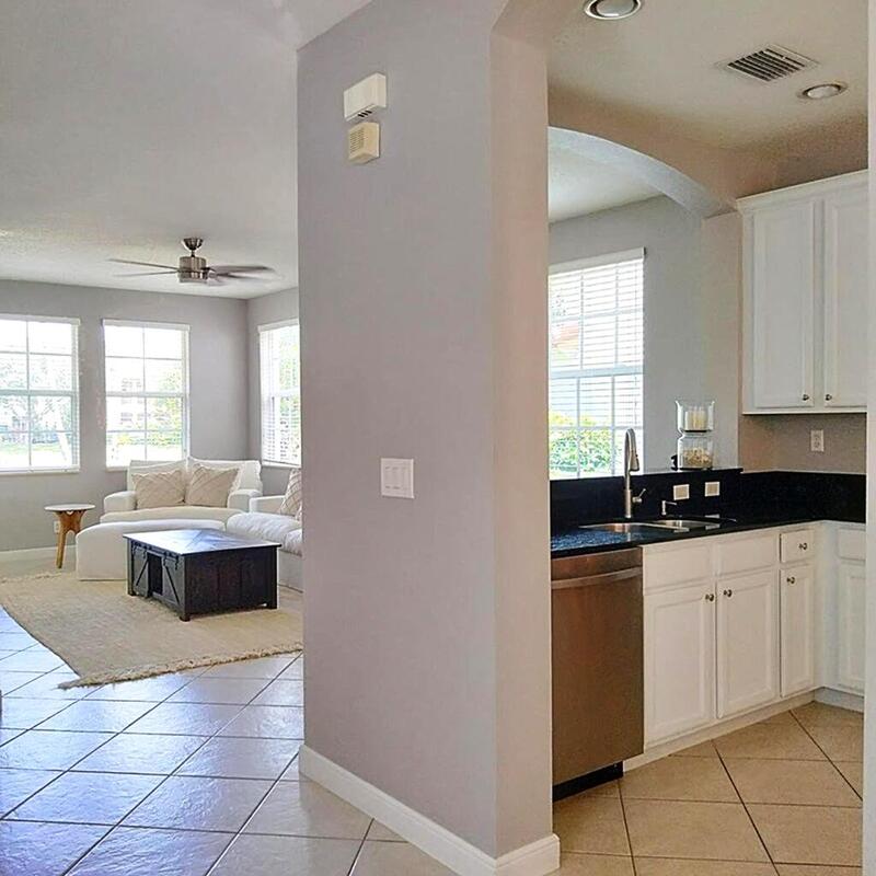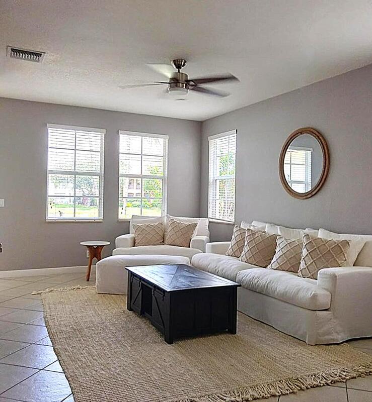 BEAUTIFUL 3BR/ 2.5BTH, 2 STORY HOUSE WITH DIRECT LAKE VIEW. OPEN KITCHEN W/BREAKFAST AREA ,SS APPLIANCES, GRANITE COUNTER TOPS. CARPET ON 2ND FLOOR. TILED LIVING ROOM WITH UPGRADED POWDER ROOM ON 1ST FLOOR. MASTER BEDROOM ON 2ND FLOOR HAS 2 SEPARATE SHELVED CLOSETS (HIS/HERS).MASTER BATHROOM INCLUDES SEAMLESS SHOWER ,SOAKING TUB, DUAL SINKS. 2ND & 3RD BEDROOMS HAVE CLOSET SPACE. LAUNDRY ROOM W/FULL SIZE WASHER & DRYER ON 2ND FLOOR. GARAGE IS CONVERTED INTO PLAY ROOM UNDER A.C. SHORT WALKING DISTANCE TO CLUBHOUSE & POOL. BASIC CABLE, TRASH PICK-UP ARE INCLUDED IN RENT. GATED COMMUNITY 'EVERGRENE' OFFERS MANNED GUARD GATE & CLUBHOUSE WITH FULL GYM, RESORT STYLE POOL, HOT TUBS, WATER PARK & TIKI HUT.CLOSE TO I-95,PB GARDENS MALL,PB AIRPORT,BEACHES