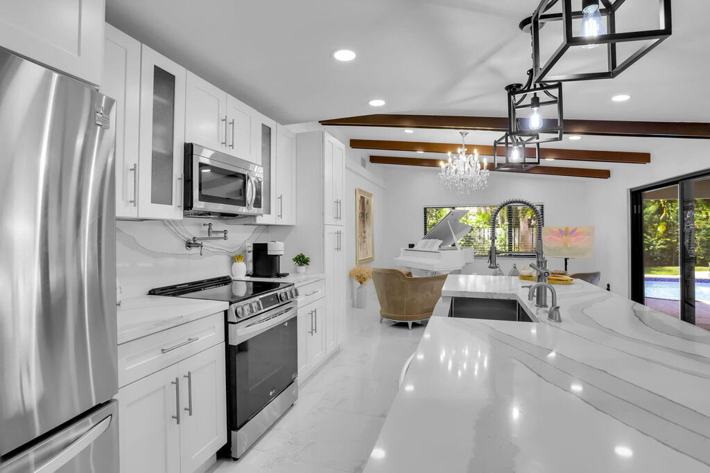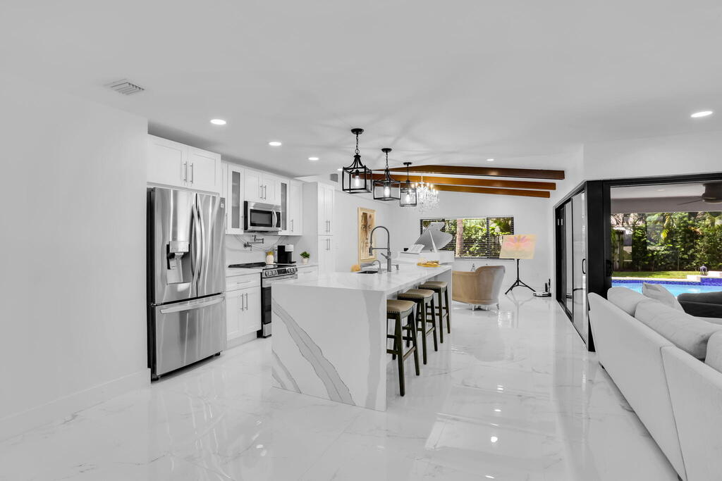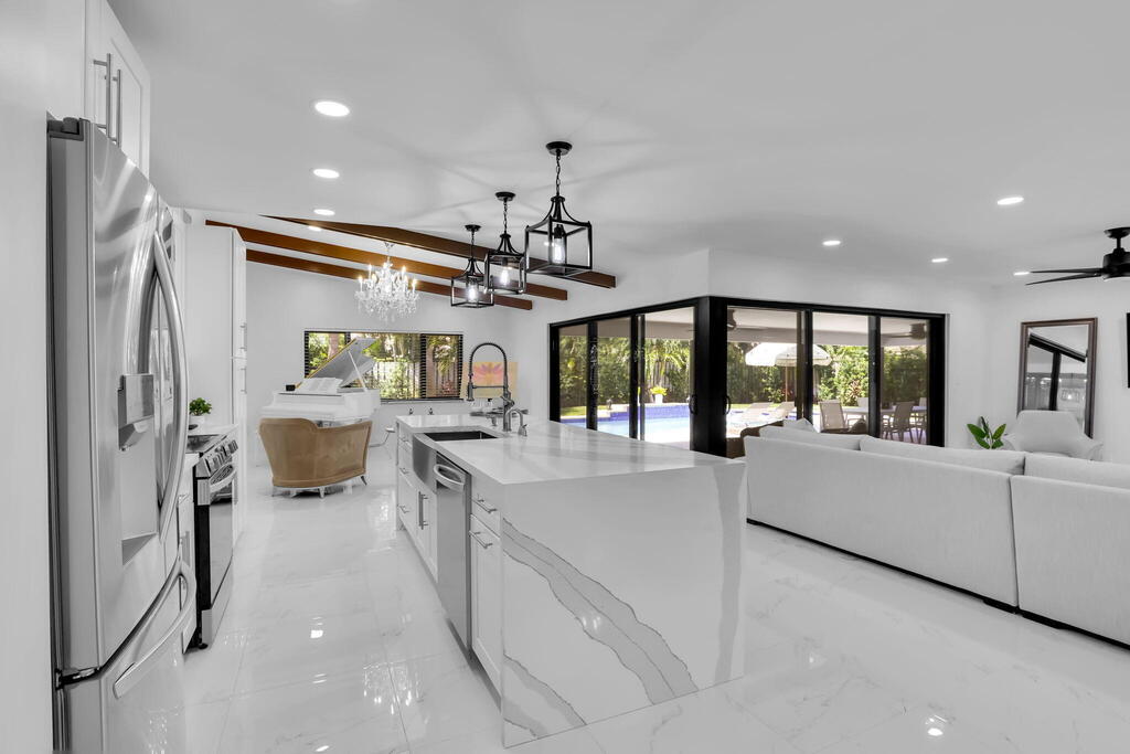 Step into timeless elegance with this fully renovated 3-bedroom, 2-bathroom pool home in the coveted neighborhood and best location in Boca. Designed for modern living, the open-concept layout seamlessly connects the living, dining, and kitchen spaces--perfect for both relaxation and entertaining. Natural light floods through expansive impact windows and doors, creating an airy, welcoming ambiance. The gourmet kitchen boasts sleek quartz countertops, custom cabinetry, and top-of-the-line stainless steel appliances. Outside, enjoy your private tropical oasis with a sparkling pool, lush landscaping, and plenty of room for gatherings.