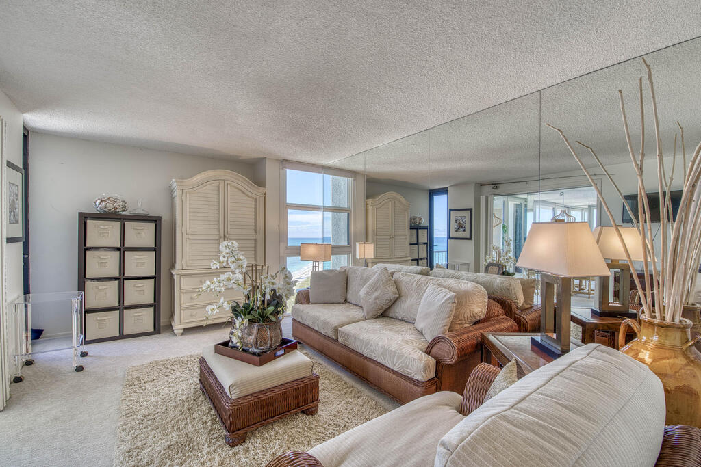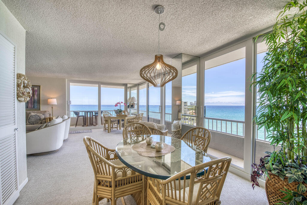 Enjoy the best ocean views on the island, perched on the pristine north end of Singer Island. Breathtaking South-East Corner direct ocean views with wrap-around balconies w/expansive Sea-Forever views. 2 BR 2 BA with King Bed in Primary BR and Queen Convertible Sleeper Sofa in Den/2nd BR. Washer/Dryer right outside condo door. Master bath has soaking tub + walk-in shower. TV's in LR and both BR's. Assigned Parking #625 right outside lobby entrance. All impact glass. Lovingly maintained condo with WOW views. Amenities include 2 heated pools, private beach access, oceanfront community room with grills, bar, TV's, putting green, 4 tennis-pickleball courts, manned gated, lobby w/fitness areas. Beach walk for miles and miles far from crowded hotels and public beaches.