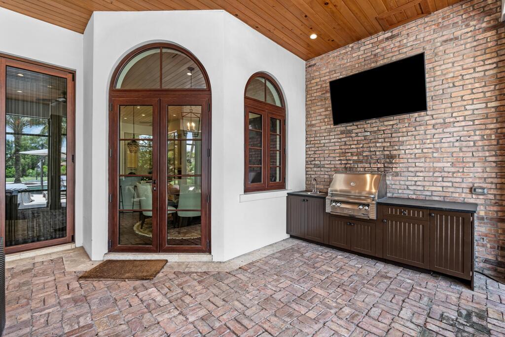 - Exterior FeaturesAuto Sprinkler, Built-in Grill, Covered Patio, Screened Patio and Summer Kitchen