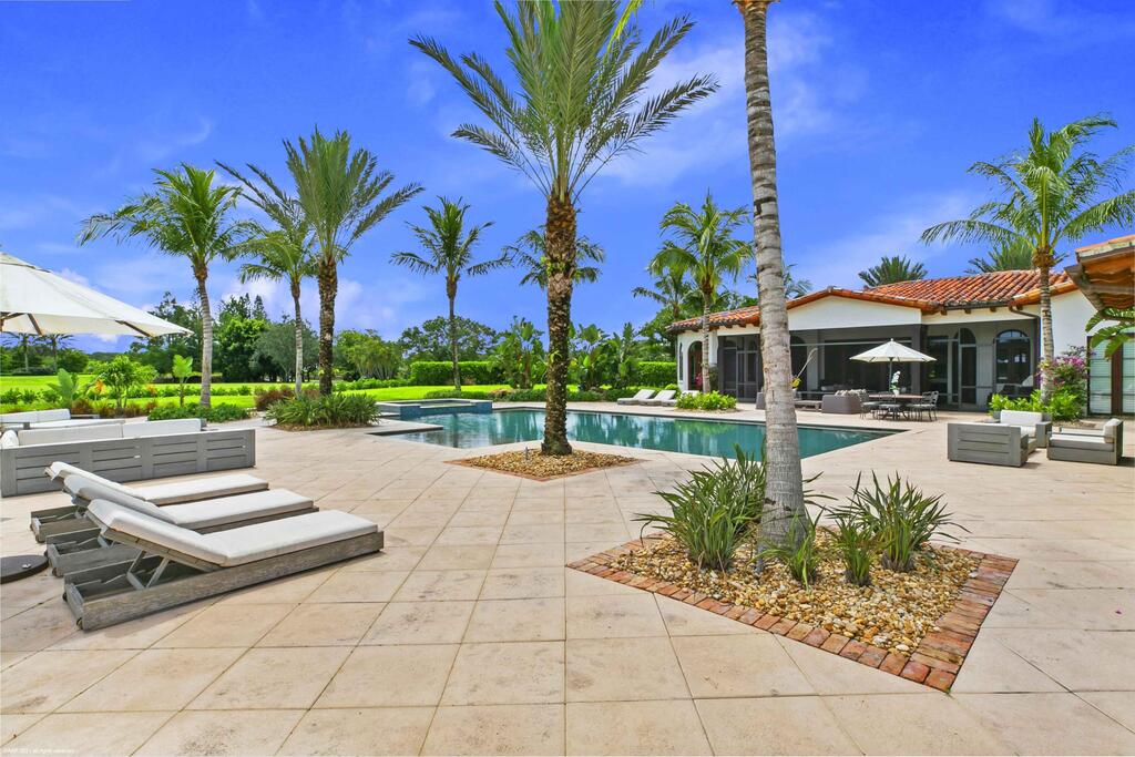 Experience the equestrian season in unparalleled luxury in this stunning 3,700 sq ft Main home and Guest House included, located just steps from Wellington International! Built in 2015, this home boasts 5 spacious bedrooms and 5.5 bathrooms. An open living room and kitchen equipped with premium Sub-Zero and GE Monogram appliances.The expansive primary suite offers a dedicated office space, dual walk-in closets, and a spa-inspired bathroom.Guest house: separate 1-bedroom, 1-bathroom pool house awaits, complete with a full kitchen, gym, and sauna. Unwind by the impressive 25' x 50' heated pool or relax in the large screened-in patio, which includes a summer kitchen perfect for entertaining. Enjoy convenience with just a quick, under-five-minute golf cart ride to the show grounds.