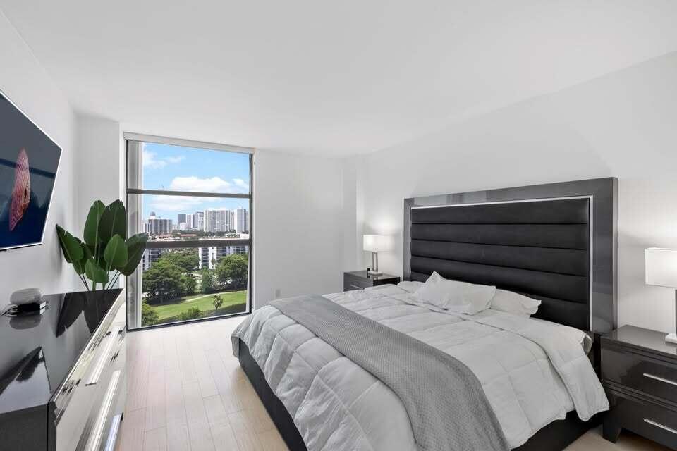 Delvista Towers, a gated community right on the famous Aventura Circle. 2BR/ 2 BA condo, with in unit washer & dryer, located on the 14th floor with stunning views of the Aventura Golf Course, city, and partial ocean view. This spacious & modern unit boasts an open layout and oversized rooms, with stylish finishes & hurricane shutters. On your private balcony, you can relax and enjoy the views of the golf course, ocean, and city. The building offers valet parking, security guard,24/7 lobby attendant, 2 tennis courts, pool & more.