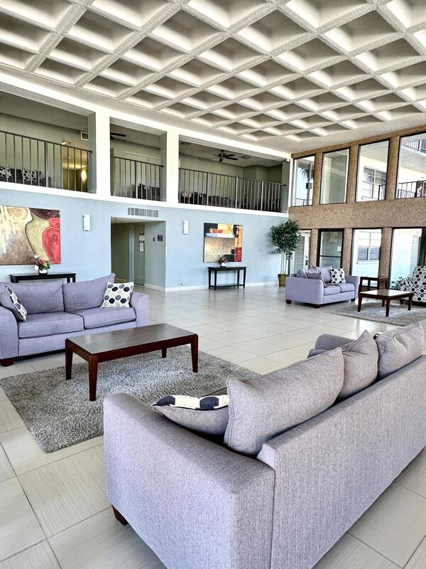 Must See! Beautifully remolded 2 Bedroom 2 BathFirst floor unit with reserved parking directly in front of the unit. Brand New Stainless Steel Kitchen Appliances. Tile Floors throughout. Enclosed Back porch with Washer & Dryer and Garden View. Water & Internet included. Community has Pool & Tennis / Pickle Ball courts.