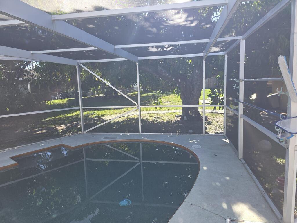 No HOA, centrally located, ready to move, metal roof, central ac, terrazzo floors, updated kitchen in 3/2, screened in pool, huge screened in patio area. All measures are approximate.