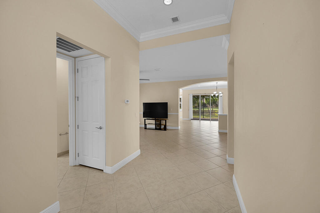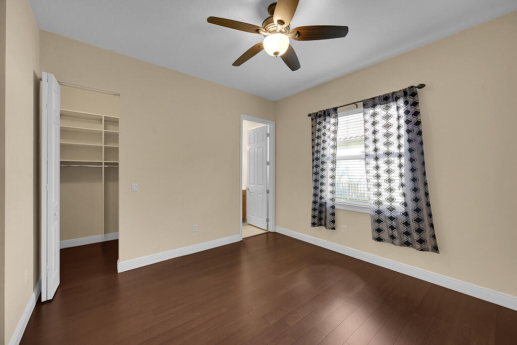 PROPERTY IS UNFURNISHED. Beautifully landscaped lake lot. Open spacious floor plan. Many upgrades including: custom closets in three bedrooms, plantations shutters in kitchen, master bedroom and bath, crown molding, accent lighting in living room, full back splash in kitchen counter area, screened lanai, fenced yard, master bedroom ceiling fan, driveway and lanai has pavers