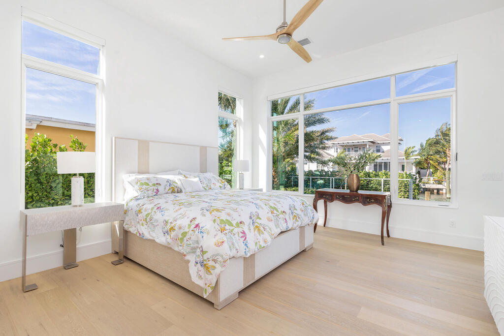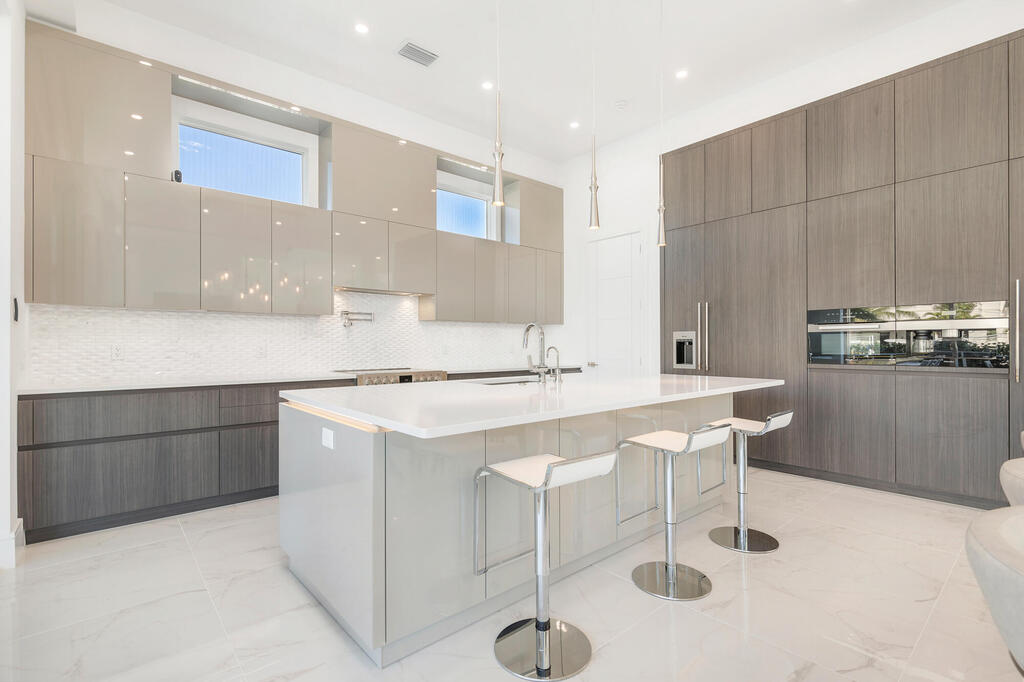 This breathtaking two-story modern residence, completed in 2023 is situated on a 100x110 lot with 100 feet of waterfrontage. The home offers stunning views of both the canal and the Intracoastal, seamlessly blending luxury, comfort, and contemporary design. With 4 bedrooms and 4.1 bathrooms, this 4,852-square-foot home boasts an expansive total area of 7,246 square feet. Designed with exceptional attention to detail, the residence is filled with natural light, thanks to floor-to-ceiling windows and soaring 23-foot ceilings. The open-concept layout provides a sense of space and grandeur, while all-impact glass and doors ensure security and peace of mind. The main level features a gourmet kitchen equipped with top-of-the-line appliances, a walk-in pantry, custom lighting, and a