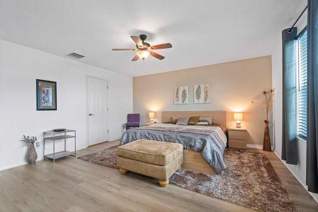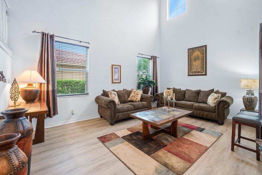 ---RENTED FURNISHED ONLY---WEST OF 441; 3 EASY MILES TO WEF - ALL BACK ROADS DOWN PIERSON. This is the one you've been waiting for! Popular 4/4 + (private office/nursery off master) 'Pearl' model w/ sweeping lake views! You are greeted w/ grand iron banister staircase. Generous dining rm & living rm w/ dramatic high ceiling. Open island kitchen w/ granite, subway tile back splash, stainless appliances, walk-in pantry & raised bar. Open concept family room is adjacent & downstairs guest room has full bath. Upstairs master bedroom suite + office and 2 additional bedrooms and 2 baths, both en-suite. Enjoy an outdoor oasis, evening sunsets & al fresco dining under covered patio w/ sprawling lake views! HURRICANE IMPACT WINDOWS