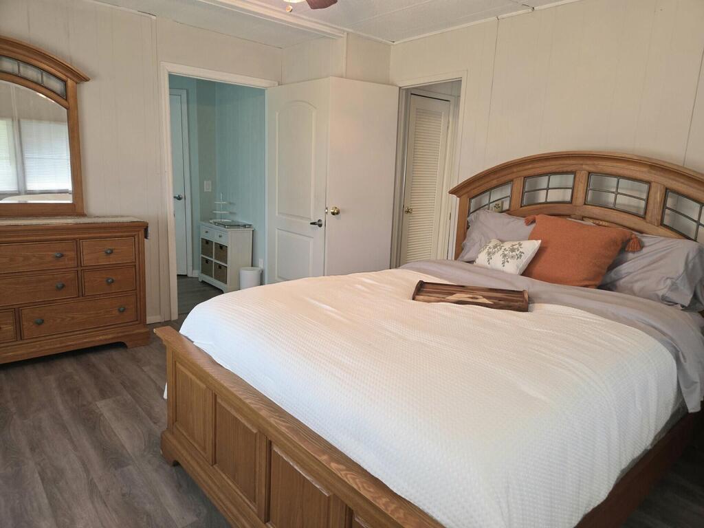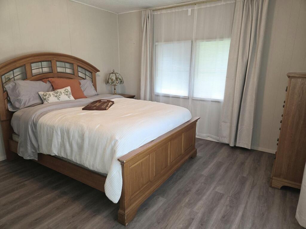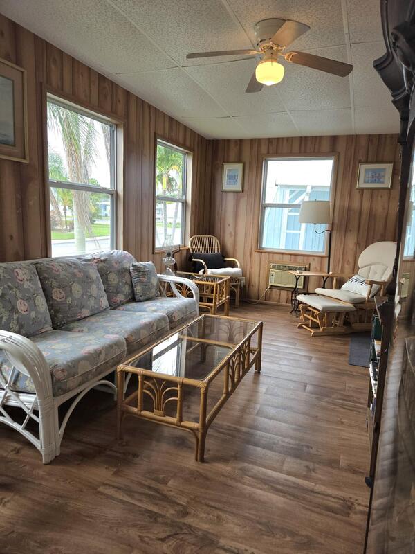This well-maintained 2/2 manufactured home is move-in ready! Freshly painted, with new flooring throughout. The kitchen and bathrooms have been updated, as well. Can be rented furnished or unfurnished. The attached shed houses a washer and dryer, as well as some wood working tools and equipment that the tenant may have use of. Mature fruit trees on property and back yard has a lovely view of the pond. Natalie Estates is an active 55+ community with numerous amenities, including shuffleboard, swimming pool, clubhouse, card room, exercise room, and group activities. Centrally located to downtown Stuart, shopping, restaurants, and beaches. Rent includes WiFi, basic cable, water, sewer, and trash. If needed, hurricanes shutters will be put up by landlord.